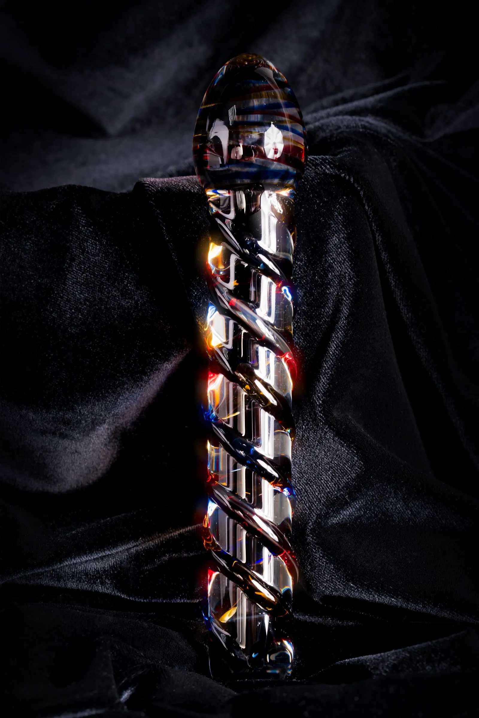 Этот идеально гладкий стеклянный фаллос делает интимные игры такими же яркими, как украшающие его ствол разноцветные полоски. Вагинальная стимуляция, анальная — с этим фаллосом можно ни в чём себе не отказывать! Он даже благосклонно относится к экспериментам с температурой: стоит лишь немного нагреть или охладить игрушку, и она откроется с новой, полной удовольствия стороны.