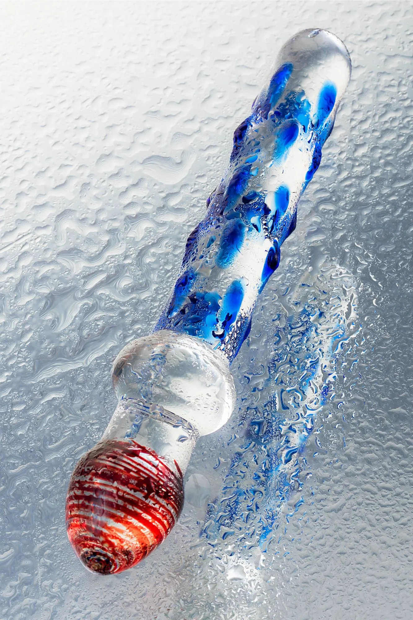 Элегантный дизайн, уникальное художественное оформление. Стекло - наиболее гипоаллергенный из всех существующих материалов. Легко нагревается и охлаждается для экспериментов с температурой. Очень прост в уходе благодаря гладкой, непористой поверхности. Общая длина — 20 см. Рабочая длина — 13 и 5 см.
