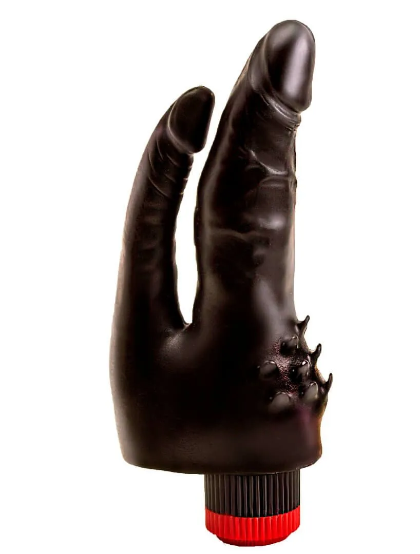 Вибромассажер – это секс игрушка, имитирующая мужской половой орган, внутри которой расположен вибрирующий элемент. Предназначен для прелюдии, тренировок мышц влагалища, изучения эрогенных зон, компенсации преждевременной эякуляции партнёра. Двойной вибромассажер разработан для одновременно проникновения и вибростимуляции влагалища и ануса, а данная модель отличается небольшими шипами у основания, для дополнительной стимуляции.