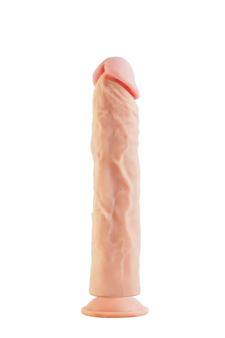 Фаллоимитатор на присоске имеет форму члена с ярко-выраженной головкой, рельефный, выполненный из сверхсовременного материала нового поколения, обладающий уникальными свойствами по пластичности, передающий эффект очень мягкой текстуры кожи. Характеристика: общая длина- 24,5 см, рабочая длина- 23 см, максимальный диаметр -5 см.