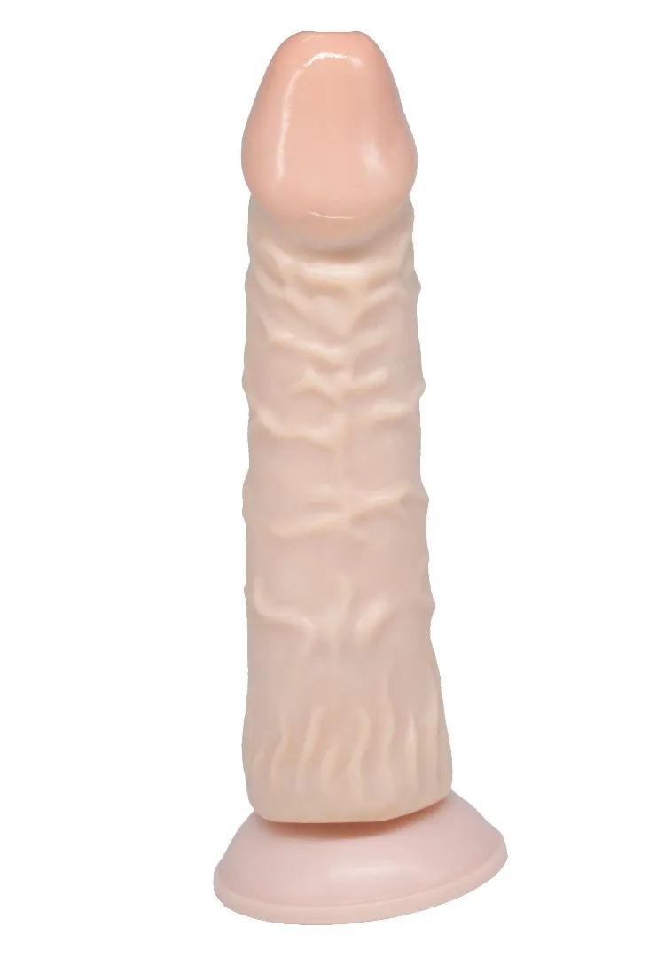 Большой, полужесткий, реалистичный фаллоимитатор телесного цвета на присоске. Имеет форму члена с ярко-выраженной розовой головкой. Необычайно приятный, упругий, рельефный, выполненный из ТПЕ, передающий эффект мягкой реалистичной текстуры кожи, не имеет швов. Имеет ребристую поверхность для дополнительной стимуляции Общая длина – 33,5 см, рабочая длина-30 см, максимальный диаметр -9 см. Упаковка в виде прозрачной пленки.
