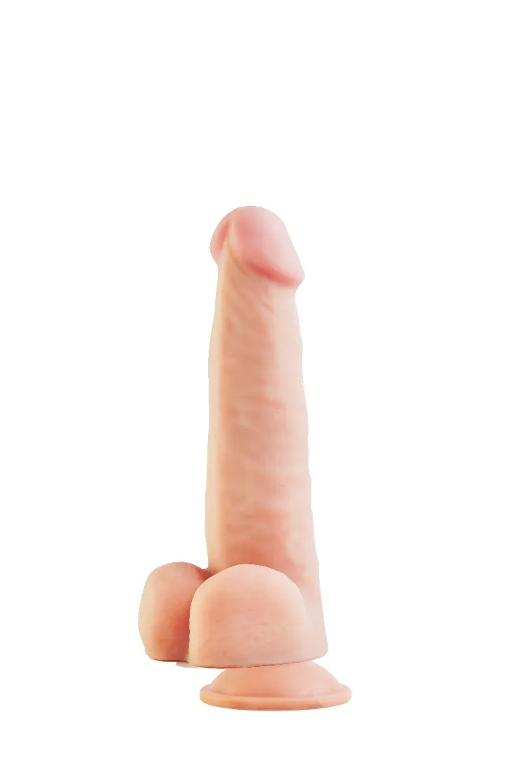 Реалистичный фаллоимитатор телесного цвета на присоске. Рельефный, мягкий и приятный на ощупь фаллоимитатор, выполненный из «Киберкожи». Общая длина –21 см, рабочая длина – 19,5 см, максимальный диаметр – 4.5 см. Упакован в прозрачную пленку.
