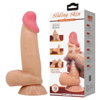 Реалистичный фаллоимитатор Sliding Skin с присоской и гибким стержнем из материала TPR. Длина игрушки составляет 19,4 см, диаметр — 4,2 см, а длина рабочей части — 14 см. Он обеспечивает натуральные ощущения благодаря скользящей поверхности и венам на стволе. Прочная присоска позволяет фиксировать игрушку на любой гладкой поверхности, освобождая руки.