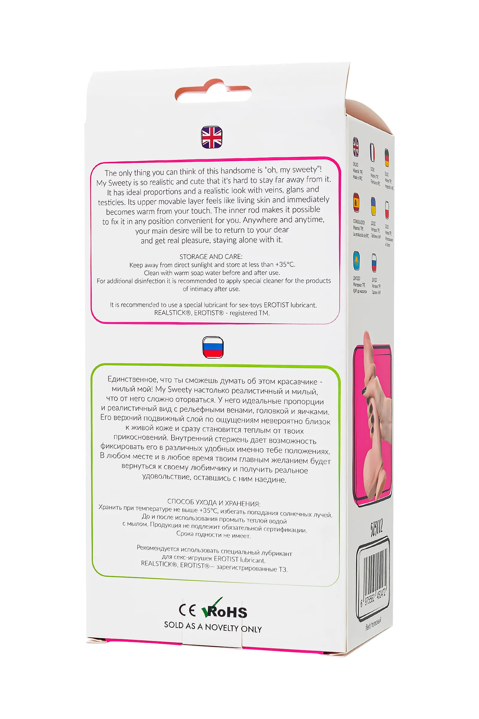 Представляем My Sweety – вашего идеального спутника в мире наслаждения! Этот фаллоимитатор из линейки My Babe от бренда RealStick спроектирован с особым вниманием к деталям. Его реалистичные пропорции, рельефные вены и мягкая, подвижная кожа создают уникальные ощущения, приближая их к реальному контакту. Длина 21,5 см и диаметр 4 см гарантируют полноту ощущений. Выпуклая головка, слегка прикрытая кожей, стремится найти вашу зону G для наивысшего удовольствия. My Sweety обещает стать нежным и страстным компаньоном. Его подвижный верхний слой теплеет под вашими прикосновениями, окутывая атмосферой реального интимного контакта. Нежный, эластичный и упругий материал TPE на ощупь как человеческая кожа. С частично скрытой головкой и внутренней хордой, My Sweety предлагает возможность наслаждаться в различных удобных положениях. Всегда готовый удовлетворить ваши желания, он обещает незабываемые моменты в любом месте и в любое время – в соло играх или с партнером. Вагинальный или анальный секс – выбор за вами, но не забудьте воспользоваться презервативом, если хотите побаловать себя анальными ласками. Упругая мошонка служит надежным ограничителем. Благодаря мощной присоске в основании, его можно использовать как страпон, а также для закрепления на любых ровных поверхностях. Он легко составит компанию в душе и ванной. Чтобы игрушка радовала вас долго, используйте лубрикант на водной основе и пудру для игрушек. Материал - TPE Оттягивающаяся кожа Общая длина 21,5 см