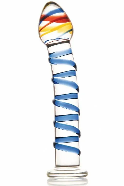 Изогнутый фаллоимитатор сделан из прочного стекла, не имеет характерного запаха и полностью гипоаллергенен. Его витой рельеф обеспечит насыщенную стимуляцию стенок влагалища, а слегка изогнутый ствол сможет достать до чувствительной точки G. Крупная каплевидная головка очень гладкая и не доставит лишнего дискомфорта во время введения игрушки. Если же Вы захотите разнообразить свои ощущения от стимуляции, то попробуйте разогреть или охладить игрушку в воде нужной температуры.