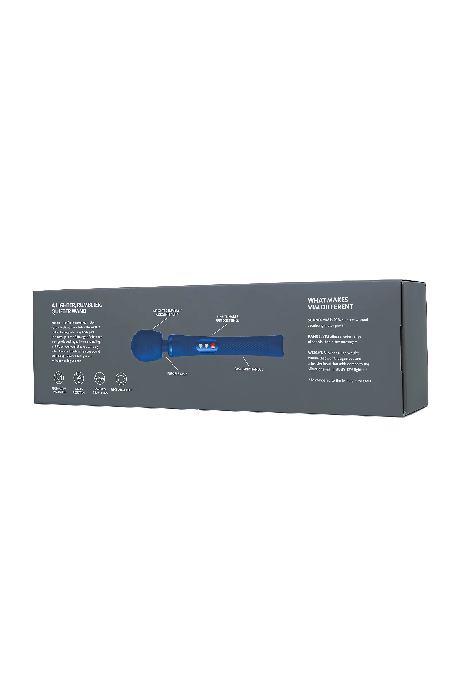 Vim от Fun Factory – это не просто вибромассажер, это погружение в элегантный мир стимуляций и удовольствия. Отличаясь от обычных вандов, Vim сочетает в себе изысканный дизайн с мощными возможностями, гарантируя неповторимые ощущения от деликатных ласк до интенсивных вибраций. Самая сильная на сегодняшний день игрушка премиум-класса Fun Factory массирует перенапряженные, уставшие мышцы и самые чувствительные части тела, такие как половые губы, клитор или промежность, с точно регулируемым диапазоном различной силы вибрации. Стимуляцию можно почувствовать даже через одежду. Vim не ограничивает ваши возможности — используйте его в различных сценариях как в соло-игре, так и в паре С его классическим дизайном “wand”, удобной ручкой и умеренно гибкой силиконовой головкой Vim обеспечивает максимальный комфорт во время использования. Широкая площадь поверхности и восхитительные текстуры по всей поверхности игрушки создают дополнительные моменты сладких переживаний. Уникальный утяжеленный двигатель создает глубокую вибрацию на любой скорости, оставаясь при этом на 50% тише, чем многие похожие игрушки. Вибрация фокусируется в головке массажера, обеспечивая точное воздействие. С легким весом 440 грамм Vim легко удерживать, даже в течение продолжительного времени. Благодаря точно настраиваемой силе вибрации VIM адаптируется к вашим индивидуальным предпочтениям, и вы можете переключаться между 5 скоростями и 3 программами, просто нажимая кнопку + или -. Если зажать кнопку + или - на одной из 5 скоростей, уровень вибрации меняется в минимальном диапазоне и становится чуть интенсивнее или слабее, как вам нужно Fun Factory VIM поставляется с тремя уникальными программами: Deep Orgasm: Целью является путешествие: программа «ГЛУБОКИЙ ОРГАЗМ» начинается мягко с легких вибраций и постепенно увеличивается до максимальной мощности. Результатом является особенно глубокая кульминация благодаря постоянному увеличению интенсивности и возбуждения - в вашем темпе. Intense Orgasm: Желание от нуля до 100: Быстрая и неудержимая программа ИНТЕНСИВНЫЙ ОРГАЗМ мгновенно захватит вас и вызовет толчок, который вы не скоро забудете. Короче говоря: испытайте лучший быстрый секс в своей жизни, включая максимальное удовлетворение. Edging: Готовы к приключениям? Во время тренировки VIM неоднократно доводит вас до грани максимально возможного возбуждения только для того, чтобы внезапно и неожиданно снова и снова переключаться на «остывание». Горько-сладкий путь к сверхинтенсивному или даже многократному оргазму. Основные преимущества Vim: Мощный, но тихий: Утяжеленный двигатель обеспечивает громкую вибрацию, оставаясь при этом на 50% тише. Материал высокого качества: 100% гипоаллергенный медицинский силикон для безопасности и приятного ощущения. Многообразие программ: 3 уникальные программы оргазма и 5 скоростей для разнообразных сексуальных переживаний. Легкий и удобный: Сбалансированный вес 440 грамм и гибкая конструкция обеспечивают комфорт даже в нестандартных положениях. Длина игрушки 31,3 см, длина головки 6,8 см, диаметр головки 6 см Водонепроницаемость: защита от брызг Цвет: Midnight Blue (Полуночно синий) Функция блокировки, точная регулировка уровней интенсивности Время работы 1-6 часов, время зарядки до 4,5 часов Магнитная USB зарядка Производится в Германии.