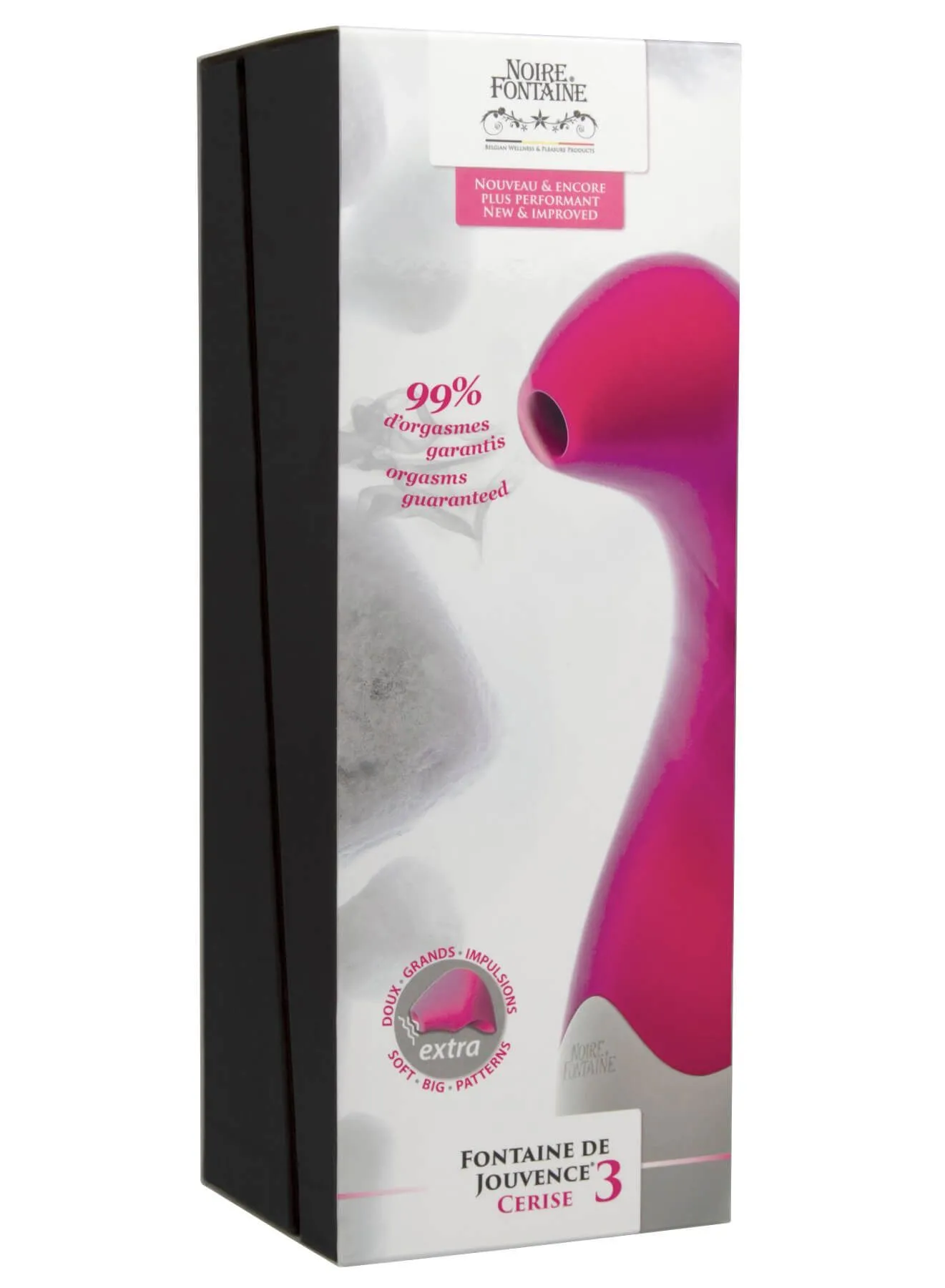 Fontaine de jouvence (фонтан молодости с фр.) - это стимулятор, который воздействует воздушными волнами, создаваемыми двигающейся вперед-назад мембраной. Данное устройство так же отлично подходит для массажа и стимуляции клитора. Всасывающий эффект обеспечит воздействие без контакта и позволит избежать чрезмерной стимуляции, что приведет к интенсивному оргазму. У игрушки есть 8 разных режимов, которые регулируются двумя кнопками на корпусе. Выберите нужную скорость и наслаждайтесь яркими ощущениями от ласк клитора!