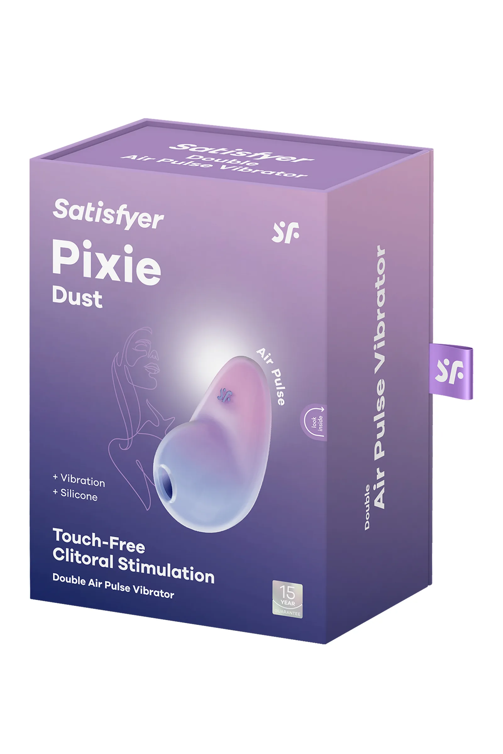 Новый магический стимулятор от Satisfyer уже здесь! Pixie Dust – вакуум-волновой стимулятор с вибрацией, способный сделать вашу жизнь немножечко волшебнее. Ведь после свидания с этим интимным гаджетом блеск глаз и счастливый румянец вам гарантирован, а значит и хорошее настроение, и оптимистичный взгляд на жизнь! Бесконтактная стимуляция клитора – запатентованная технология Air Pulse для женских оргазмов. Накладной стимулятор Pixie Dust сможет порадовать 11 уровнями интенсивности вакуум-волновой стимуляции и 12 программами вибрации – от нежной до интенсивной. Интуитивно понятное управление с помощью трех кнопок на корпусе и множество комбинаций по вашему предпочтению. Стильный дизайн Pixie Dust превосходно лежит в ладони. Плдходящий размер и форма, чтобы взять любимый стимулятор в дорогу. Стильный и качественный гаджет создан для эстетического и сексуального удовольствия. Игрушка станет идеальным компаньоном как для новичка, так и для опытного пользователя. Потрясающий шелковистый на ощупь высококачественный гипоаллергенный силикон – визитная карточка бренда Satisfyer. Поверхность раструба мягко и деликатно стимулирует клиторальную область. Тактильно нежный и приятный на ощупь силикон быстро адаптируется к температуре вашего тела. Внешняя часть выполнена из качественного ABS-пластика. Необычный цвет игрушки в виде градиента от фиолетового к розовому оттенку добавляет капельку волшебства процессу. Чтобы получить максимум удовольствия и сохранить материал в наилучшем виде, рекомендуется пользоваться качественной смазкой на водной основе. После использования обязательно очищайте стимулятор теплой водой со специальными бактерицидными спреями для интимных товаров. И не забывайте о волшебных приключениях под водой! Satisfyer Pixie Dust водонепроницаем (IPX7), что позволяет использовать его в ванне или душе. Когда придет время для зарядки, просто подключите его кабель USB и верните его волшебную силу в несколько мгновений. Особенности: Возможность одновременного воздействия на клитор воздушной пульсацией и вибрацией - 2 автономных мотора Управление кнопками на корпусе 12 режимов вибрации и 11 режимов волновой стимуляции. Цветовое решение в виде фиолетово-розового градиента делает игрушку особенно привлекательной. Мягкий, эластичный силикон без запаха, без аллергенов и вредных для здоровья веществ и качественный ABS-пластик. Длина стимулятора - 9,4 см, ширина - 5,3 см, диаметр раструба - 1,5 см. Возможность использовать игрушку в ванной и душе благодаря полной водонепроницаемости (до 30 минут на глубине до 1 метра) – IPX7. Перезаряжаемый, магнитный USB-кабель. Гарантия 15 лет.