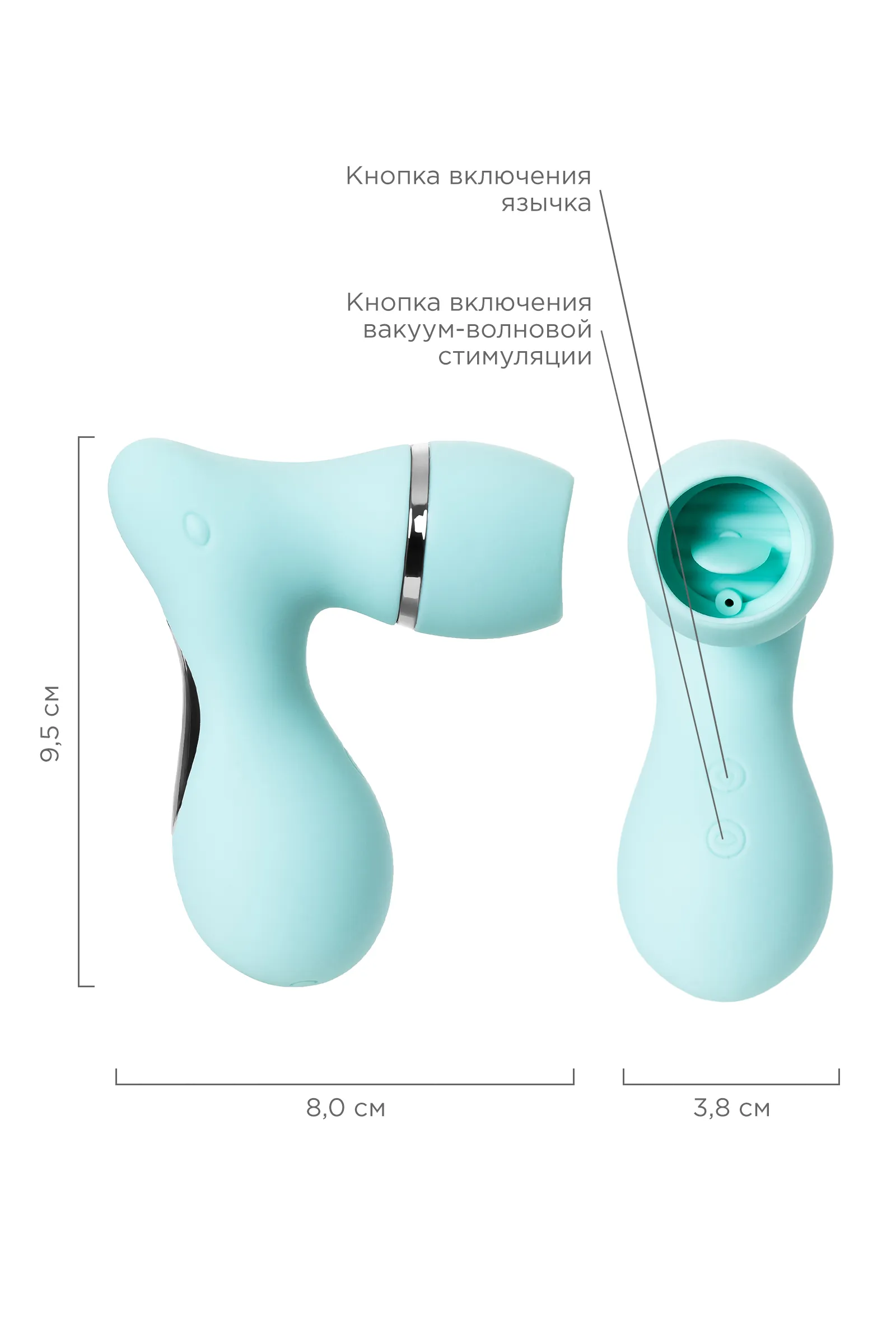 Вакуумный стимулятор клитора с язычком JOS DINGO, силикон, голубой, 9,5 см