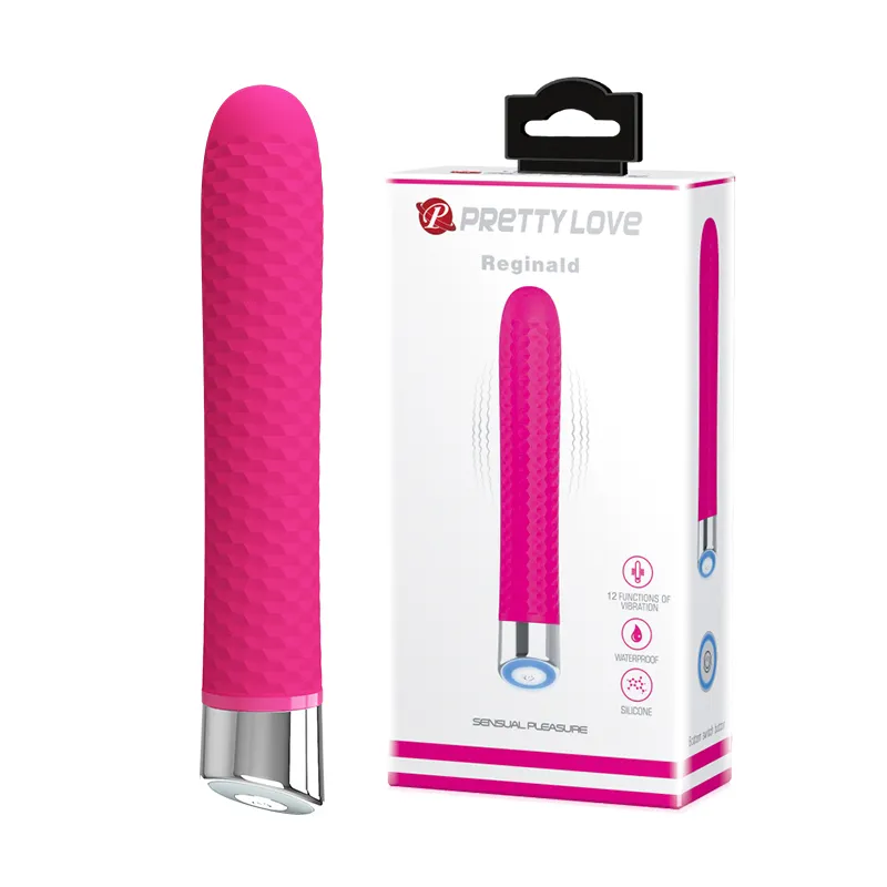 Вибростимулятор нежного цвета с  рельефной поверхностью. Изготовлен из силикона, приятен на ощупь. Имеет 12 режимов вибрации. Режимы переключаются при помощи кнопки в основании игрушки. Работает от 2-х батареек ААА (нет в комплекте). Общая длина - 16,7 см,максимальный диаметр -2,7 см. Упаковка - коробка с принтом.
