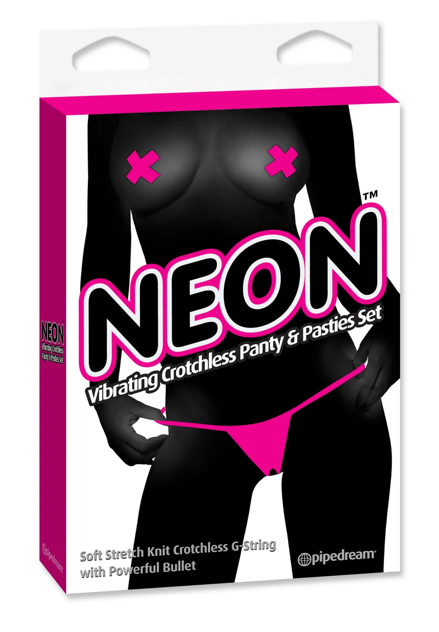 Набор Neon Vibrating Crotchless Panty & Pasties Set от бренда Pipedream состоит из контактных вибротрусиков и накладок на соски, выполненных в ярко-розовом цвете. Аксессуары из набора подойдут как для одиночной игры, так и для проведения незабываемого вечера с партнером. На нейлоновых трусиках есть небольшой кармашек, предназначенный для пластиковой вибропули. Ее дразнящие вибрации будут стимулировать эрогенные зоны, доводя Вас до пика наслаждения. К тому же на трусиках есть специальный вырез в промежности, благодаря чему Вы сможете не снимать их во время занятий любовью. А самоклеяющиеся пестисы добавят Вашему образу сексуальности и соблазнительности.