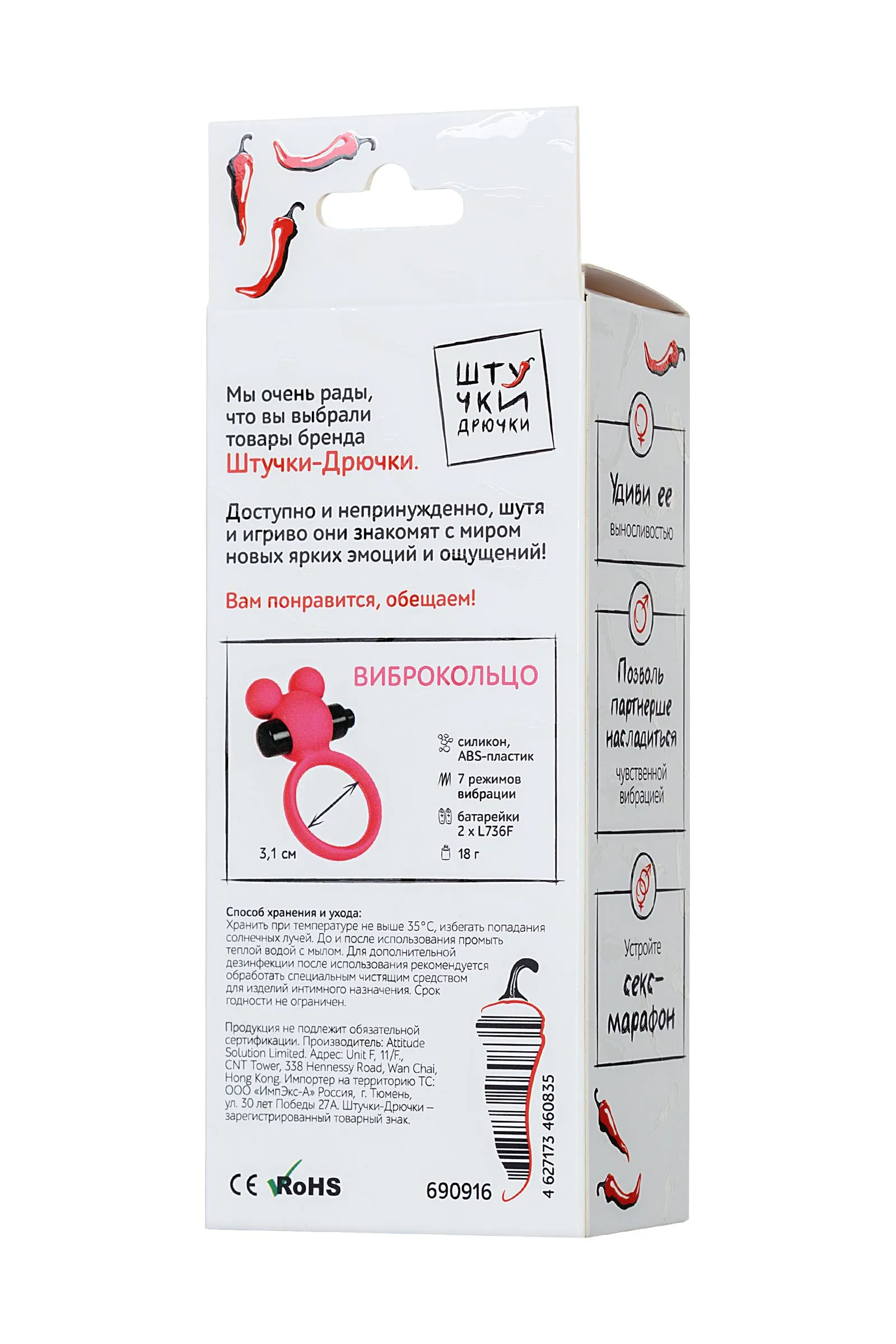 Силиконовое виброкольцо Штучки-дрючки позволит вам усилить ощущения и получить совместное удовольствие от секса. Надев кольцо, мужчина почувствует увеличение эрекции, в то время как ваша партнерша будет наслаждаться чувственной вибрацией. Силиконовое кольцо обладает эластичностью, что позволяет растянуть игрушку до нужного диаметра, плотно обхватывает пенис, тем самым усиливая эрекцию и увеличивая продолжительность полового акта. Съемная вибропуля позволяет использовать игрушку как в режиме вибрации, так и без нее.