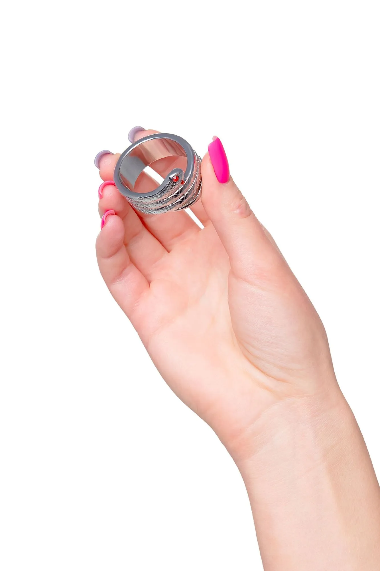 Изящный мужской аксессуар служит не только стильным украшением, но и продлевает и усиливает эрекцию. Металлическое кольцо для головки полового члена выполнено в виде змеи, обнимающей ствол пениса тугими кольцами. Кольцо фиксируется под головкой полового члена, благодаря чему головка становится более твердой, выраженной и особо чувствительной. При каждом движении кольцо массирует уздечку, вход во влагалище и зону G, многократно усиливая удовольствие обоих партнеров. Металл – один из самых безопасных и экологичных материалов, его можно использовать со всеми видами смазок и он прост в уходе. Кольцо из металла – особо прочное и тугое, добавьте немного лубриканта для комфортного надевания и снятия. Как использовать: Выбирайте кольцо подходящего диаметра, чтобы испытать максимальное удовольствие. Наденьте кольцо на половой член в эрегированном состоянии, для этого добавьте немного лубриканта. Зафиксируйте кольцо под головкой пениса и убедитесь, что оно плотно прилегает. Не допускайте дискомфорта и не носите кольцо более 30 минут. Как подобрать размер: Кольцо не должно быть слишком тугим или болтаться, но при этом оно должно легко надеваться и сниматься. Чтобы правильно подобрать нужный диаметр кольца, снимите 2 мерки с полового члена. Оберните мягкую измерительную ленту вокруг пениса чуть ниже головки и запишите полученные значения: одно - в расслабленном состоянии, другое – в эрегированном. Сложите ваши мерки, разделите на 2, и затем разделите на 3,14. Полученное значение – оптимальный диаметр подходящего вам кольца. Для дополнительной безопасности измерьте самую широкую часть на головке пениса и разделите на 3,14. Зная диаметр шляпки пениса, вы сможете подобрать достаточно удобное кольцо, которое не будет соскальзывать.