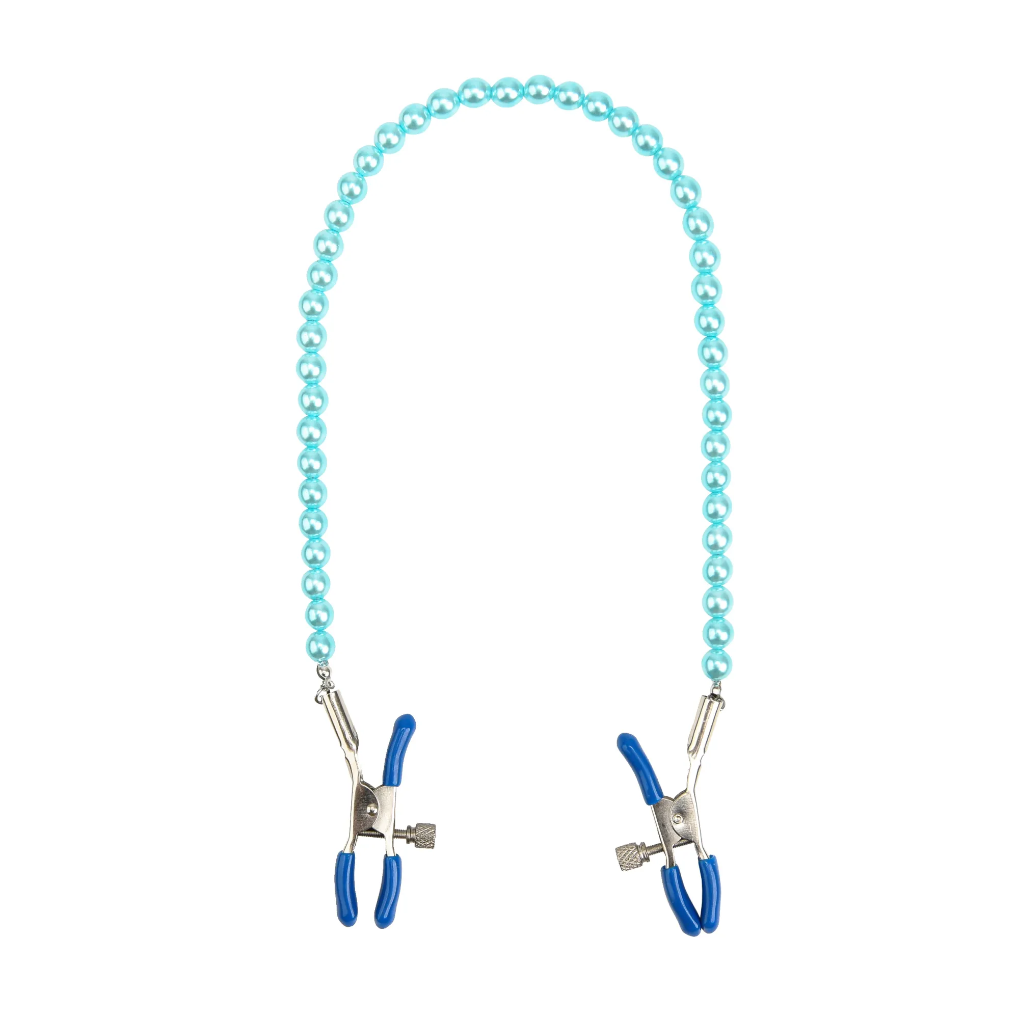 Зажимы на соски с цепочкой из бусин служат дополнительным стимулятором одной из самых чувствительных зон.Включают в себя 2 полностью регулируемых многофункциональных зажима. Имеют мягкие наконечники,между собой зажимы соединены цепью из бусин, которая одновременно служит своебразным утяжелителем для дополнительных ощущений.