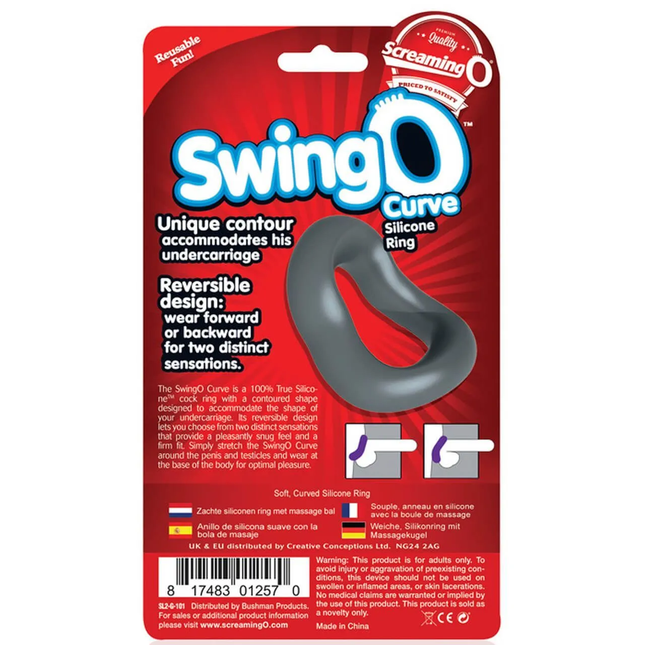 SwingO Curve от бренда ScreamingO - это двустороннее эрекционное кольцо, напоминающее петлю. Его дизайн позволяет надевать кольцо несколькими способами, благодаря чему у Вас будет больше простора для сексуальных экспериментов. Оно обеспечит мощную и продолжительную эрекцию и замедлит наступление эякуляции, позволяя мужчине продержаться дольше и подарить особое удовольствие своей партнерше.