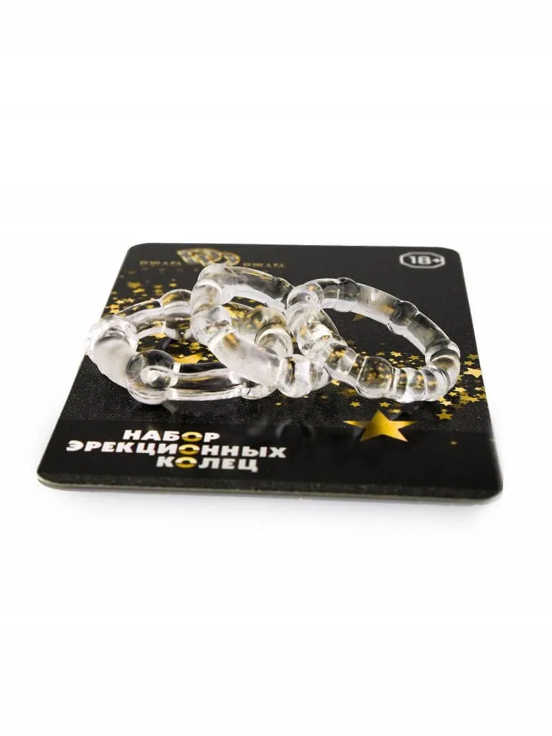 Эрекционное кольцо - это приспособление, при надевании которого на основание полового члена, создаётся барьер для оттока крови, что увеличивает эрекцию и продлевает время полового акта. В данном наборе три кольца разного диаметра, которые можно использовать по отдельности или одновременно.