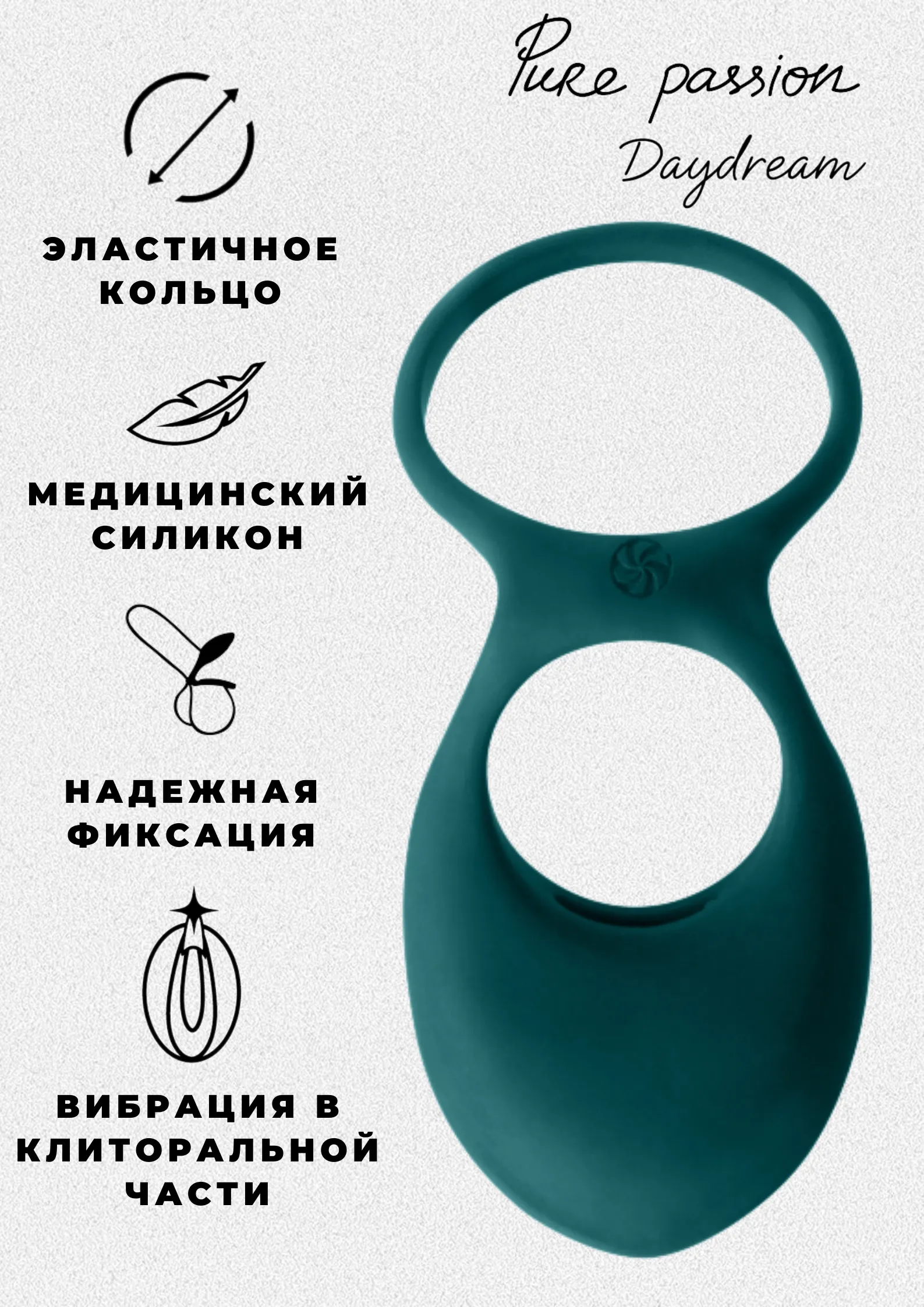 Двойное эрекционное кольцо из эластичного силикона подходит для дополнительной стимуляции обоих партнёров. Одно кольцо крепится на основании пениса, второе - за мошонкой. Кольцо хорошо тянется и подходит для всех размеров. Клиторальная стимуляция обеспечивается благодаря вибропули. Вибропулю можно извлечь из силиконового кольца и использовать отдельно. Диаметры колец 3,1см и 4,3см.