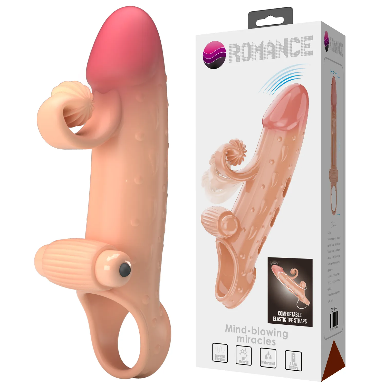 Насадка на пенис с вибрацией из ТПР плотно обхватывает пенис, увеличивая его длину и толщину, обеспечивая более яркие ощущения при проникновении. Вибрация усиливает стимуляцию, а гибкий клиторальный отросток с рельефной текстурой обеспечивает дополнительное удовольствие партнёрше при каждом движении.  Вибрация питается от одной батарейки типа AAA (в комплект не входит).