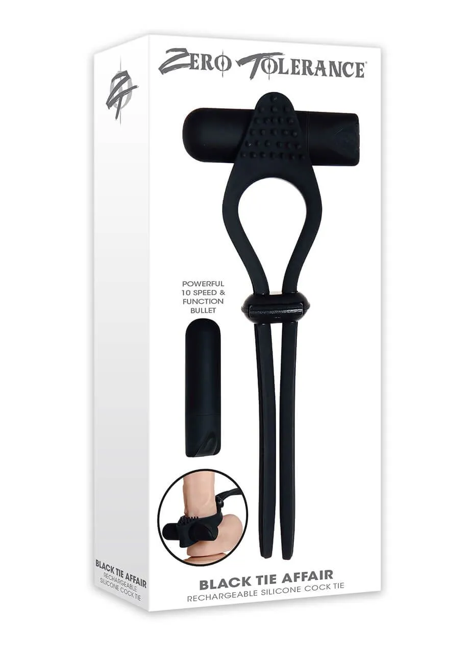 BLACK TIE AFFAIR - это эластичная игрушка для пар, которая надевается на половой член, перекрывая отток крови, и следовательно, усиливает эрекцию и замедляет процесс семяизвержения. При этом вибрирующая часть лассо дополнительно стимулирует женщину.