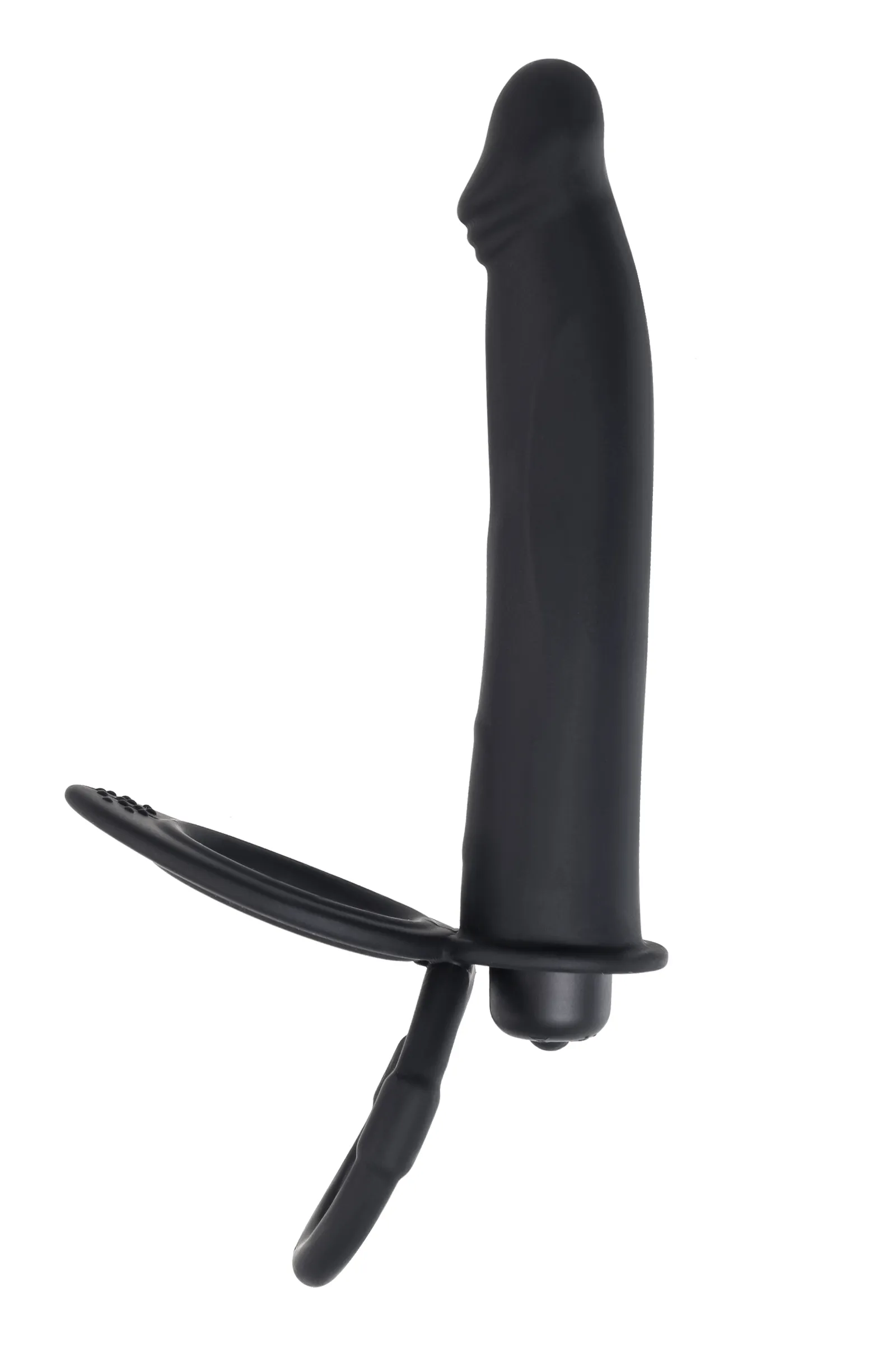 Насадка на пенис для двойного проникновения – это отличный выбор для любителей продвинутых сексуальных развлечений без участия третьих лиц. Встроенная вибропуля добавит ярких ощущений с помощью 10 режимов вибрации. Насадка надежно фиксируется на теле двумя кольцами, которые плотно обхватывают ствол пениса и мошонку. Это оказывает дополнительный эффект для продления полового акта, а партнер в это время получает в два раза больше удовольствия, что ускоряет приближение оргазма. Гладкий ствол и слегка изогнутая головка с дополнительным рельефом отлично стимулирует эрогенные зоны. Материал насадки – гипоаллергенный медицинский силикон. Рабочая длина насадки 13 см, диаметр в самой широкой части 2,6 см. Диаметр колец 3,5см/ 3,8 см. Материал: силикон, ABS-пластик. Цвет: черный