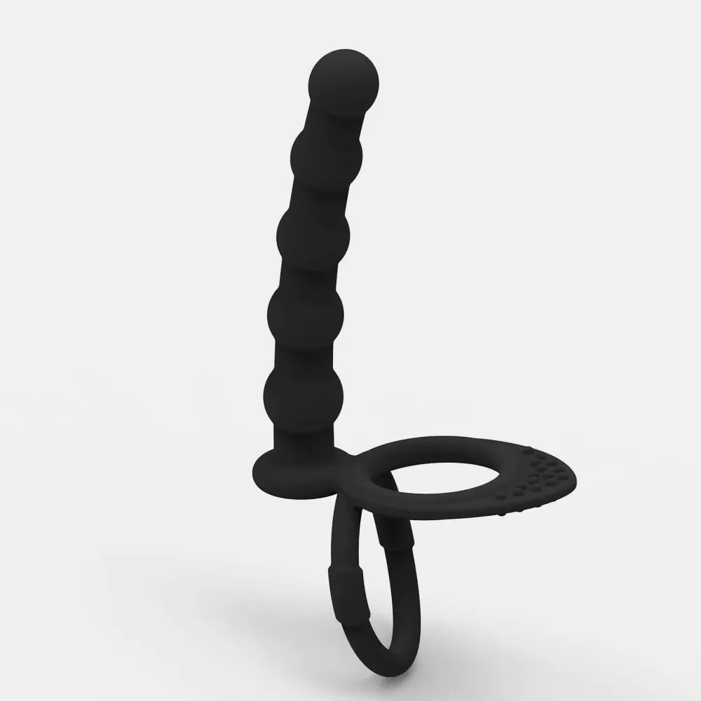 Рельефная насадка на пенис для двойного проникновения – это отличный выбор для любителей продвинутых сексуальных развлечений без участия третьих лиц. Насадка надежно фиксируется на теле двумя кольцами, которые плотно обхватывают ствол пениса и мошонку. Это оказывает дополнительный эффект для продления полового акта, а партнер в это время получает в два раза больше удовольствия, что ускоряет приближение оргазма. Шарики на стволе насадки придают пикантности проникновению. Пять анальных бусин стимулируют чувствительный сфинктер, усиливая наслаждение принимающего партнера. Материал насадки – гипоаллергенный медицинский силикон. Рабочая длина насадки 13 см, диаметр в самой широкой части 2 см. Диаметр колец 4,6 см.