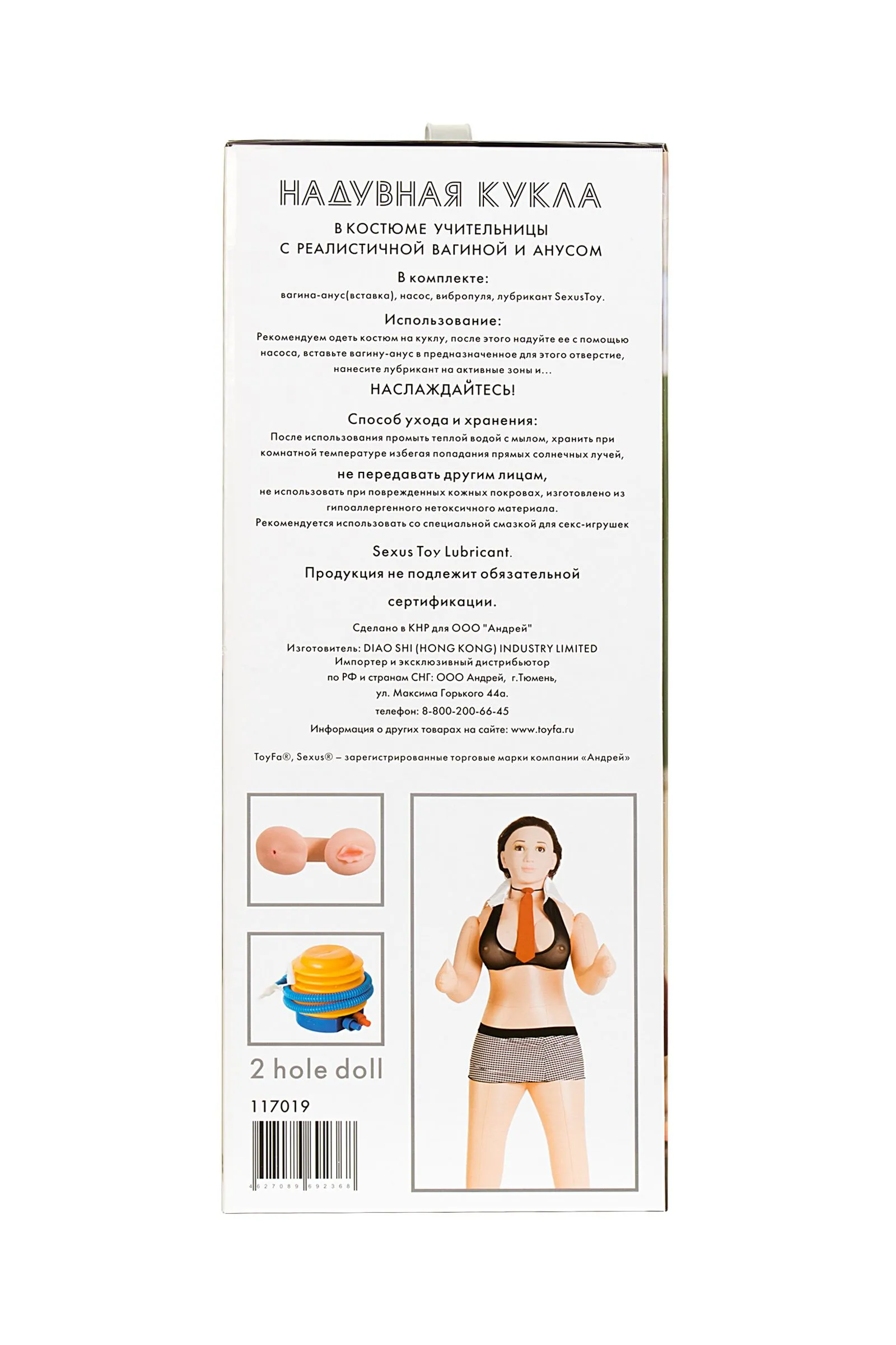 Заняться любовью со страстной училкой - одна из самых популярных сексуальных фантазий любого мужчины еще с выпускного класса. Теперь фантазию легко воплотить в реальность. С этой темноволосой возбужденной преподавательницей вы можете с увлечением проходить любые уроки интимного характера, и двойку на этот раз вам никто не поставит... С ней воплощать скрытые желания проще простого, ведь она создана для того, чтобы доводить до фееричного оргазма! Эта брюнетка обожает вагинальный и анальный секс, её интимные места выполнены из киберкожи — невероятно приятного на ощупь материала. Помимо этого, кукла имеет реалистичную голову, подвижные согнутые руки и большую упругую грудь. Пришло ваше время задавать домашнее задание! Рост 160 см.