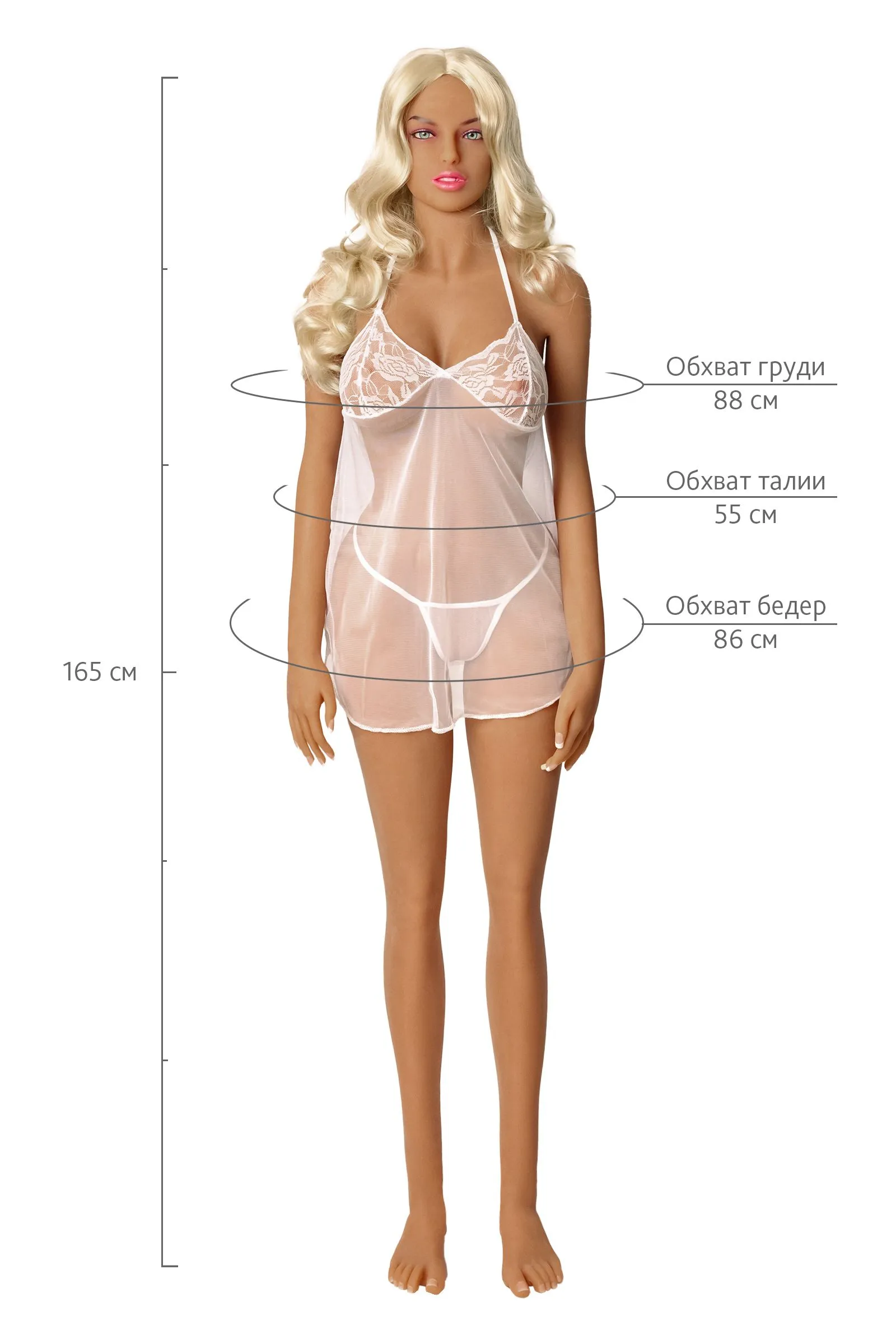 Эй, секси, ты можешь звать меня Helga. Я вижу, как ты смотришь на меня. Я байкер, я знаю чего хочу и не боюсь это получить! У меня есть вещи из кружева, но я всегда разная! У меня нет предпочтений к типу мужчин, и я люблю знакомиться. Ты из тех больших парней с татуировками? Или ты всезнайка и ботаник? А может, ты юный неопытный мальчик или любопытная девчонка? Эй, я уверена, мы подружимся! Открою тебе секрет, танец на коленях – лучший подарок, который можно сделать мужчине или женщине, особенно от такого эксперта, как я. Делай, как я говорю, и ты получишь кое-что сверх своих самых смелых желаний! Хочешь узнать меня немного ближе? ● у меня нежная кожа из реалистичного материала ● я могу меняться по твоему настроению – у меня сменный парик ● я могу обнимать тебя и принимать разные позы – у меня гибкие конечности ● я могу принимать тебя тремя способами – орально, анально и вагинально ● глубина влагалища 18 см, глубина ануса 18 см, глубина полости рта 15 см ● мои параметры: 88х55х86 см, рост 165 см, длина стопы 21 см, вес 33 кг В комплект к каждой кукле входит: ● Нижнее белье ● Парик и расческа ● Белая комбинация ● USB-нагреватель ● Очищающее устройство ● Белые перчатки Во избежание окрашивания и деформации поверхности куклы рекомендуется использовать бельё и принадлежности, идущие в комплекте. Вес транспортной коробки 5-7 кг Предепреждение: кукла может содержать следы талька на поверхности