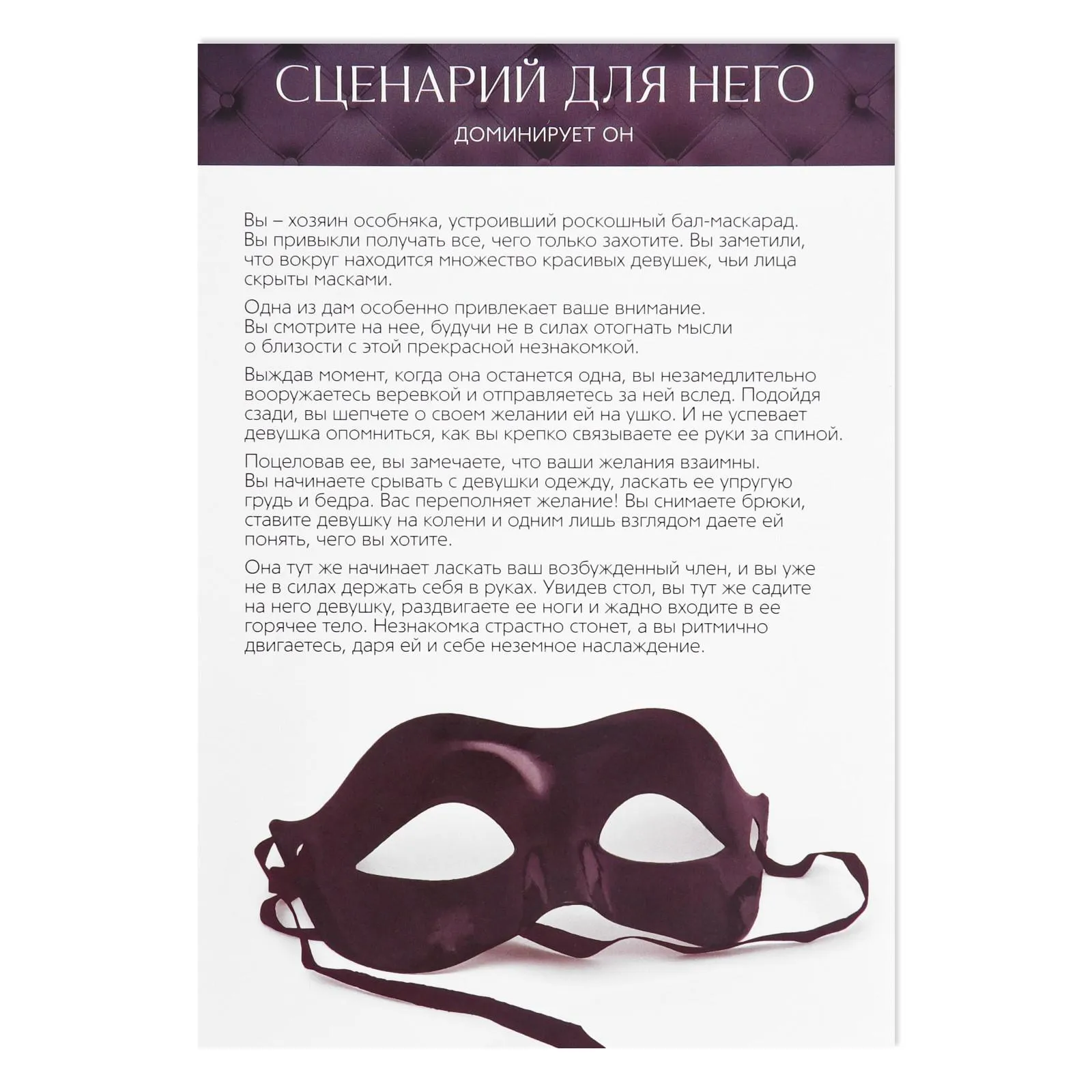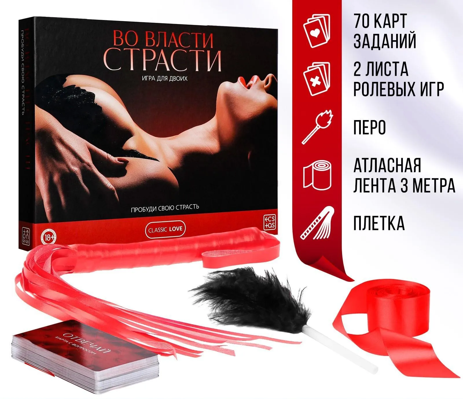 Повседневная рутина и стресс мешают человеку расслабиться. Как только мы возбуждаемся, сразу начинаем чувствовать себя желанными и сексуальными. Оргазм – это сильный источник энергии, который возможно заполучить вместе с игрой «Во власти страсти»! Поэтому скорее открывайте коробку, чтобы узнать главные секреты.