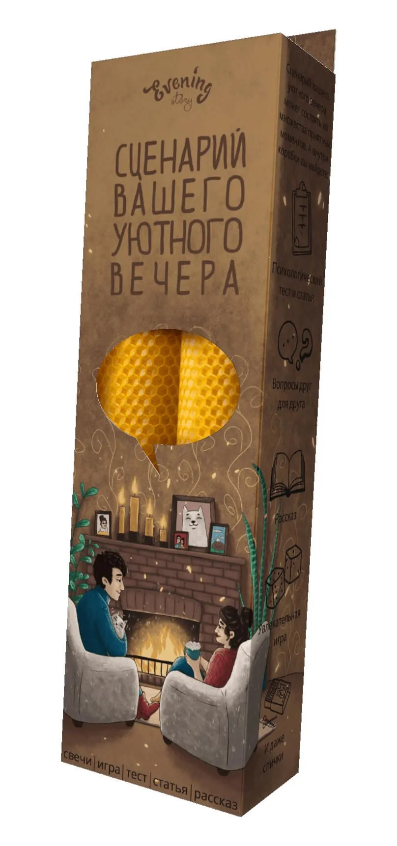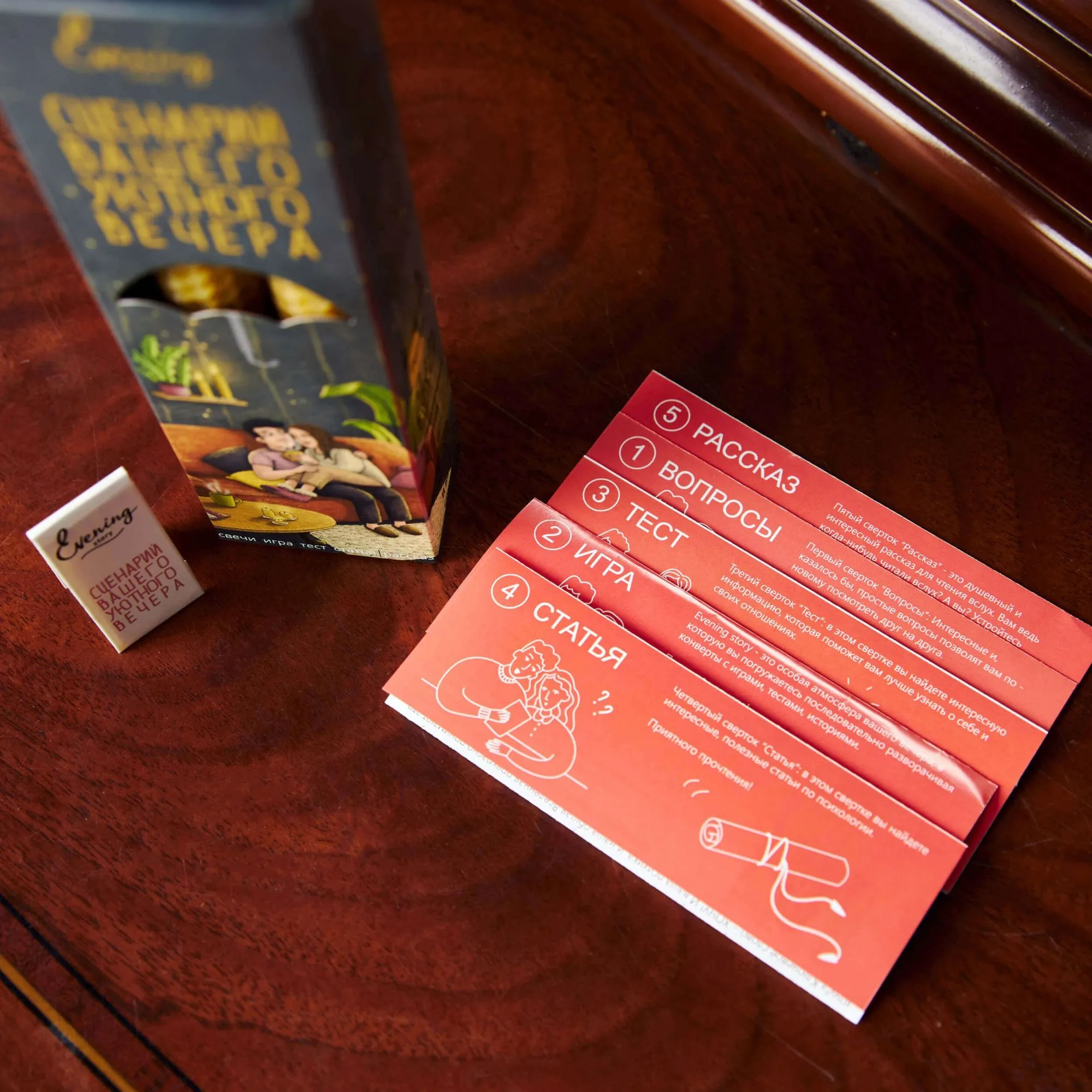 Набор "Сценарий вашего уютного вечера" от Evening Story это легкий способ для пары провести уникальное и запоминающееся свидание. Данный сценарий, за 2 часа, поможет вам сблизится и лучше узнать друг друга. А так же найти в партнёре что-то новое, даже если вам кажется, что вы уже знаете абсолютно всё.