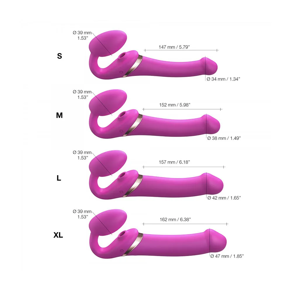 Помимо трех моторчиков страпон оснащен дополнительным вакуумным стимулятором в области клитора.: