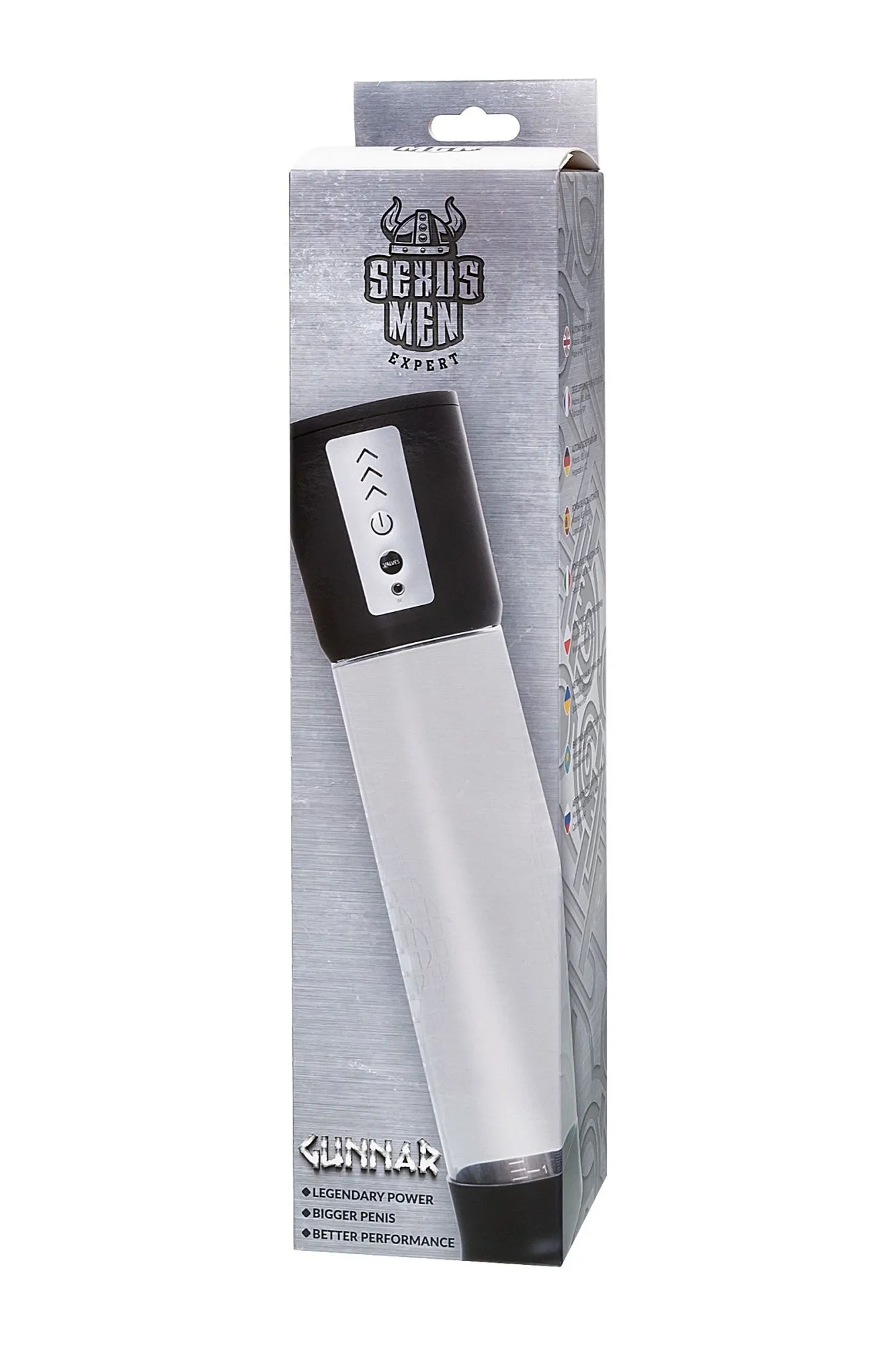 Автоматическая помпа на аккумуляторе Gunnar от Sexus® Men – для самых требовательных мужчин, которые стремятся к легендарной мужской силе. Сексуальное могущество для мужчины – не только крепкая и надежная эрекция, но и внушительный размер орудия. С автоматической помпой Gunnar серии Sexus® Men Expert возможно достичь впечатляющих результатов в области увеличения размеров пениса, занимаясь пенбилдингом по эффективной программе тренировок. Для тренировки, а также чтобы подготовить себя к длительному и яркому сексу, вставьте свой пенис в колбу и откачайте воздух. С помпой Gunnar не нужно прилагать усилий для создания вакуума, она сделает это за вас комфортно и безопасно. Помпа имеет 3 уровня давления, которые регулируются кнопкой включения на самом устройстве с LED-подсветкой. Другая кнопка постепенно сбрасывает вакуум. Помпа не имеет ограничений при откачке воздуха и требует самостоятельного прекращения понижения давления с помощью кнопки Valves. Благодаря отрицательному давлению увеличивается приток крови к половому члену. Прозрачный ABS-пластик позволяет наблюдать как пенис набирает силу и увеличивается в размере. А измерительная шкала позволит отслеживать результаты прямо в процессе. Для достижения ощутимых результатов рекомендуются систематические занятия по программе эффективного тренинга, которая входит в комплект. Регулярное использование вакуумной помпы Gunnar от Sexus® Men позволяет: последовательно увеличить длину и диаметр полового члена, делая его более внушительным и прокаченным сделать эрекцию более стабильной, крепкой и продолжительной повысить сексуальную выносливость и половое влечение поднять уверенность в своих возможностях и совершать новые сексуальные подвиги снизить вероятность образований аномальных фиброзных тканей Помпа Gunnar комплектуется программой тренировок и USB-проводом для зарядки. Порядок работы помпы: Включение: коротким нажатием на кнопку «включение» помпа включается сразу на 1 уровень откачки воздуха, загорается индикатор первой скорости. Повышение уровней: коротким нажатием на кнопку «включение». Понижение уровней: нет Отключение: следующее после третьего уровня нажатие на кнопку «включение» отключает помпу. Сброс давления: кнопкой «VALVES» сбрасывается давление в колбе.