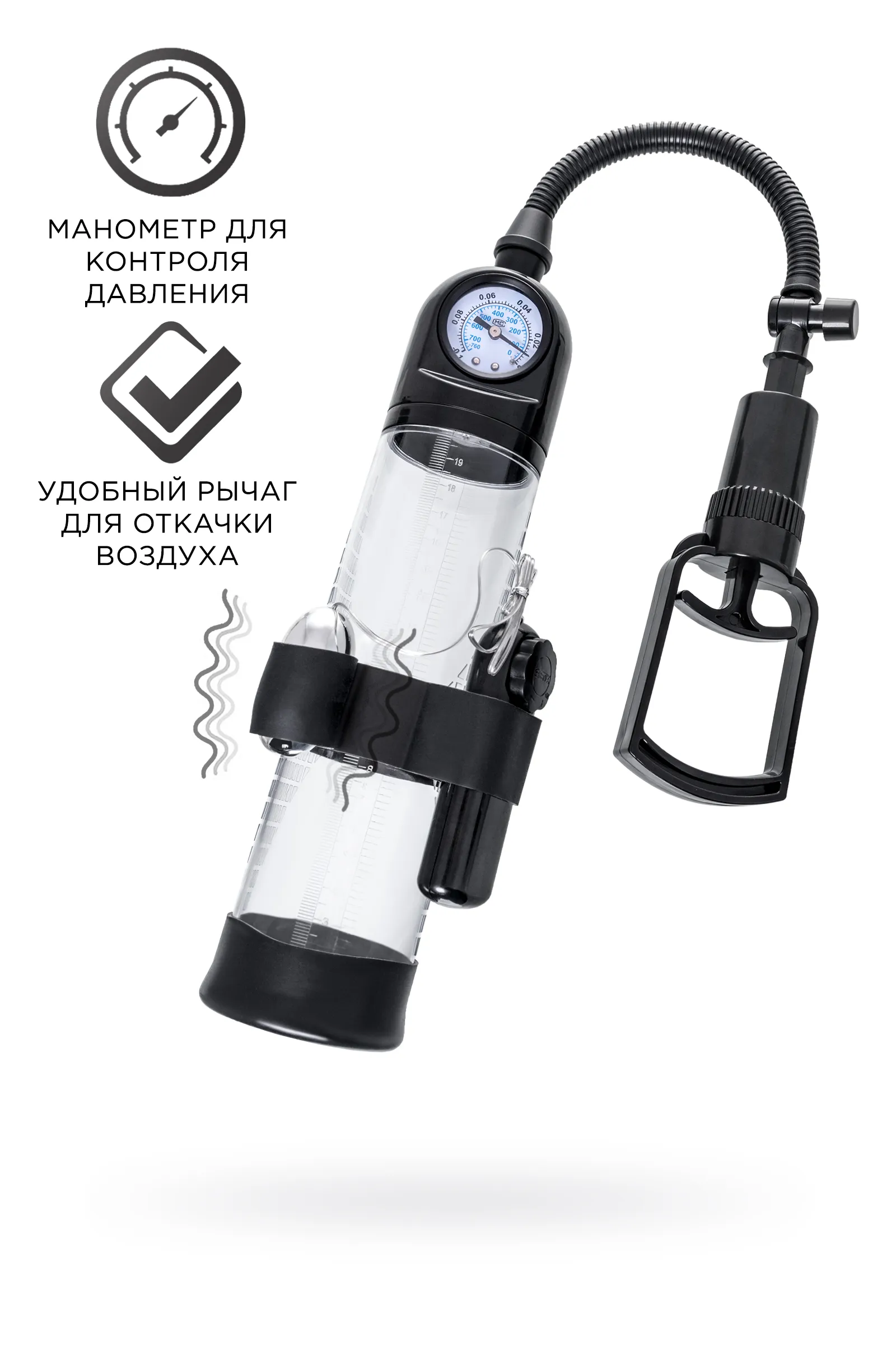 Гарант сексуального могущества для мужчины не только крепкая и надежная эрекция, но и внушительный размер орудия. Для тех, кто стремится достичь впечатляющих результатов в области увеличения размеров пениса, рекомендуется механическая помпа с вибрацией Aksel от Sexus® Men. С помпой Aksel серии Sexus® Men Training легко управлять своими тренировками по пенбилдингу, усиливать эрекцию и получать новые ощущения от полового акта. Мультивибрация делает процесс не только полезным, но и приятным. Регулируйте вибростимуляцию с помощью пульта и вибропули на корпусе помпы. Для тренировки, а также чтобы подготовить себя к длительному и яркому сексу, вставьте свой пенис в колбу и откачайте воздух с помощью рычага. Благодаря отрицательному давлению увеличивается приток крови к половому члену, за уровнем давления удобно следить с помощью встроенного манометра. Прозрачный ABS-пластик позволяет наблюдать как пенис набирает силу и увеличивается в размере. А измерительная шкала позволит отслеживать результаты прямо в процессе. Для достижения ощутимых результатов рекомендуются систематические занятия по программе эффективного тренинга, которая входит в комплект. Регулярное использование вакуумной помпы Aksel от Sexus® Men позволяет: последовательно увеличить длину и диаметр полового члена, делая его более внушительным сделать эрекцию более стабильной, крепкой и продолжительной повысить сексуальную выносливость и половое влечение поднять уверенность в своих возможностях и совершать новые сексуальные подвиги понизить вероятность образований аномальных фиброзных тканей Помпа Aksel комплектуется поршневым рычагом для разрежения воздуха, механическим манометром, клапаном для быстрого сброса давления, вибропулей с пультом управления и программой для эффективных тренировок. Гофрированный шланг, силиконовая насадка, качественные материалы – все вместе это делает использование помпы Aksel не только безопасным, но и комфортным!