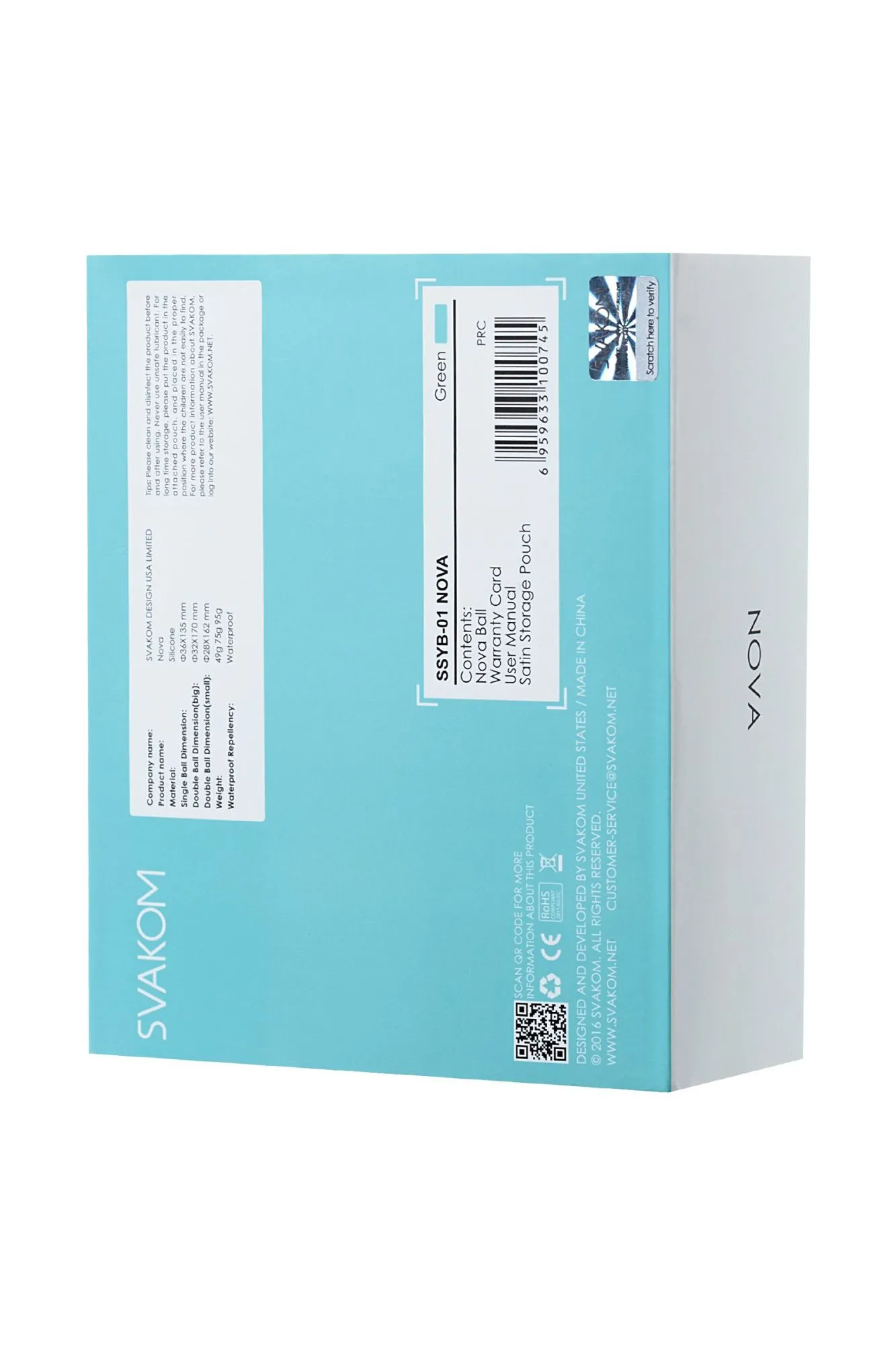 Здоровье и время - самые главные ресурсы. Заботиться о своем интимном здоровье помогает набор вагинальных шариков Svakom Nova. Весь набор изготовлен из безопасного силикона, который является 100% водонепроницаемым. Каждый шарик оснащен силиконовой ручкой-петелькой для удобства удаления после использования. Шарики Кегеля особенно хорошо помогают тем, кто хочет подтянуть свои влагалищные мышцы после родов. Набор из 3х шариков имеет три постепенно увеличивающиеся в весе шара для разных целей и тренировок. Эффект упражнений с шариками помогает укрепить женщине ЛК-мышцы (лобково-копчиковые мышцы), мышцы тазового дна, улучшают тонус влагалища, принося сексуальное удовлетворение. Подходят для ежедневных упражнений и послеродового восстановления. Материал: экологически чистый и безопасный для тела силикон Три различных веса Одиночный шарик: Размер 36X135 мм, вес 49g Двойной шарик: Размер 32X170 мм, вес 75г. Двойной шарик: Размер:28X162 мм, вес 95г. Водонепроницаемость: 100% Цвет: голубой
