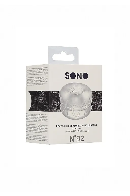 N0. 92 - Reversible Masturbator and Bumper – мастурбатор открытого типа с текстурным внутренним и внешним рельефом. Он изготовлен из эластичного мягкого материала, прекрасно растягивается, подстраиваясь под любой размер при этом плотно облегая член. Мастурбатор не скользит, удобно и комфортно располагаясь в руке.