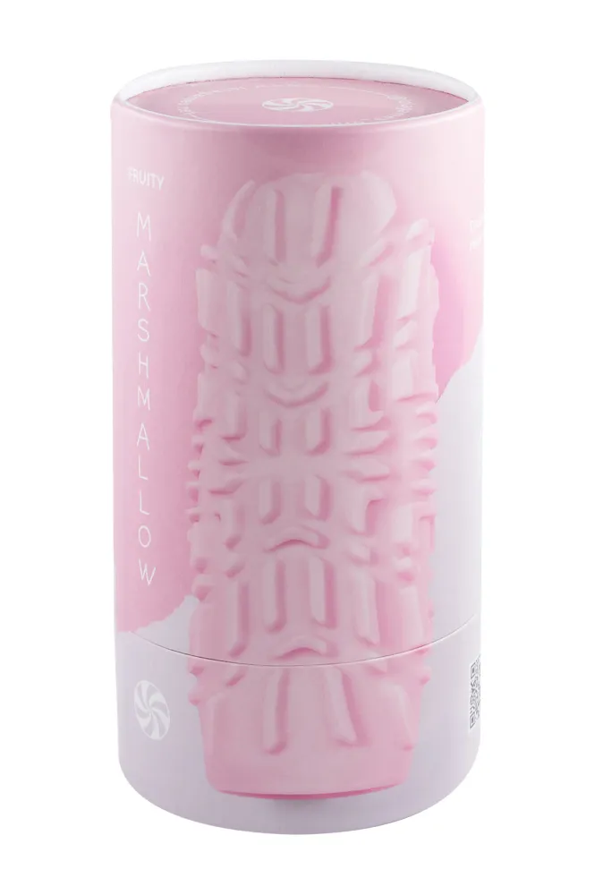 Нереалистичный мастурбатор Fruity из коллекции Marshmallow обладает двусторонней поверхностью с яркими разнообразными рельефами, что позволит испытать оригинальные и незабываемые ощущения. Выполнен из эластичного и бархатистого материала - ТПЕ. Отлично тянется и подходит для любого размера. Можно использовать соло или во время прелюдии. Благодаря толстым стенкам и ярко выраженному рельефу мастурбатор долго прослужит владельцу. Рекомендуется использовать совместно с лубрикантом. До и после использования промыть в теплой воде, просушить и обработать пудрой для интим игрушек. Каждая игрушка аккуратно упакована в стильный тубус, что обеспечивает удобство их хранения. Материал - ТПЕ,  длина – 13,9 см, толщина стенки - 6 мм, максимальный диаметр - 5,2 см, диаметр входного отверстия - 2 см.
