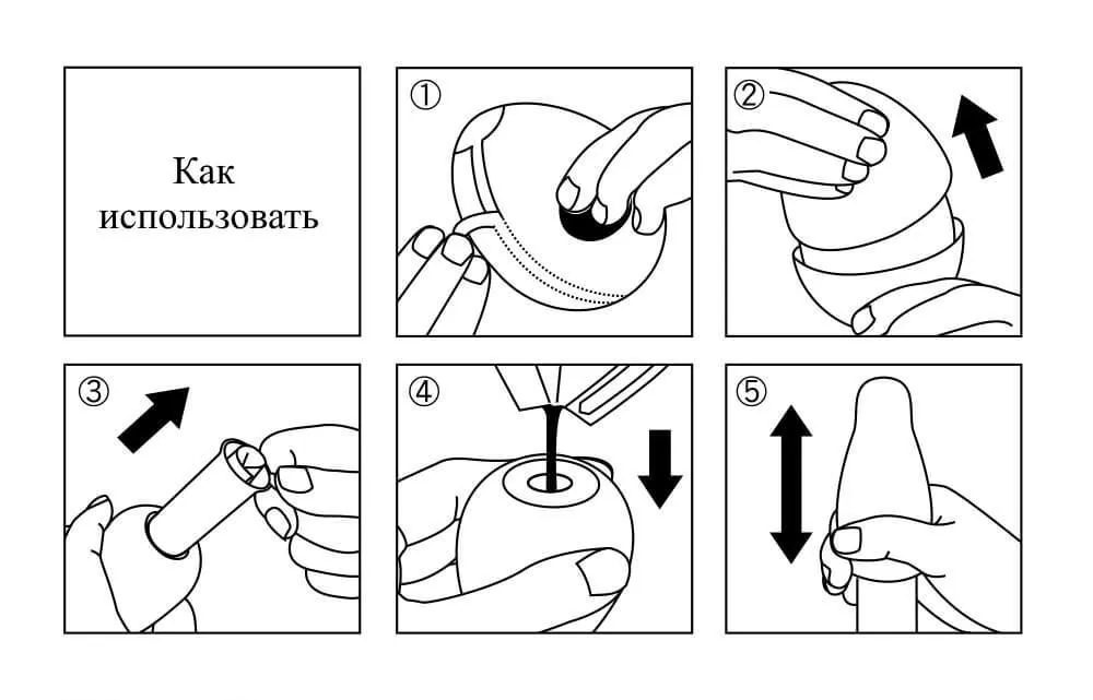 Cнимите пленку и откройте упаковку, в которой находятся мастурбатор и саше с лубрикантом. Влейте лубрикант внутрь яйца и нанесите его по краям для наилучшего скольжения. Наденьте эластичный мастурбатор на член и получайте удовольствие!