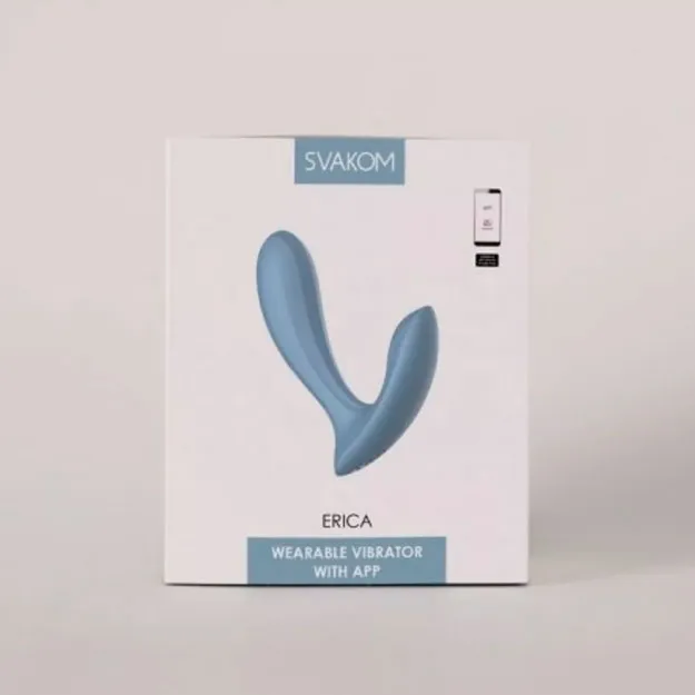 Носимый вибратор Svakom Erica с дистанционным управлением через приложение Svakom. Комфортная эргономичная форма, текстурированный силиконовый корпус и 11 разнообразных режимов вибрации.