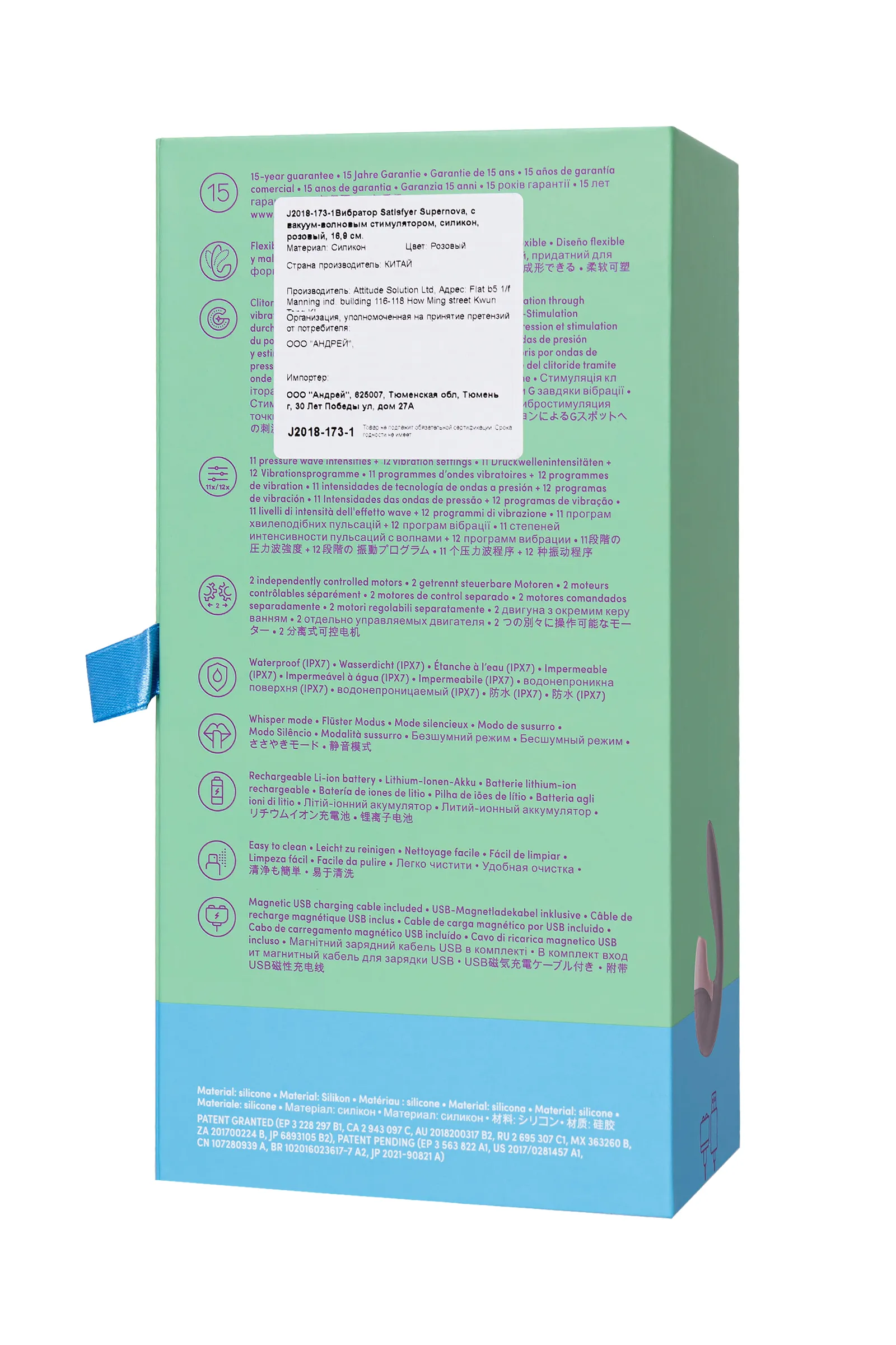 Supernova от Satisfyer способна подарить неземное блаженство и космические оргазмы. Многофункциональный стимулятор сочетает в себе лучшее от вибратора-кролика и вакуум-волнового стимулятора. Supernova стимулирует клитор воздушными пульсирующими волнами. Бесконтактная стимуляция клитора – новейшая запатентованная технология Air Pulse для женских оргазмов. В вашем распоряжении 11 уровней интенсивности вакуум-волновой стимуляции. Гибкая Supernova оказывает стимуляцию зоны G с помощью 10 режимов потрясающей вибрации. Погружной стержень легко регулируется до 45 градусов, подстраиваясь под анатомию каждой женщины. Два автономных мотора открывают множество вариаций воздушной пульсации и вибрации для самых масштабных оргазмов, которые когда-либо могли быть. Эргономичный дизайн продуман для комфортного использования. Широкое основание удобно помещается в ладони, позволяя совершать необходимые движения погружной частью, не отвлекаясь от внешней стимуляции. Потрясающий шелковистый на ощупь высококачественный гипоаллергенный силикон – визитная карточка бренда Satisfyer. Особенности: Возможность одновременного воздействия на клитор и зону G Управление кнопками на гибком корпусе. 10 режимов вибрации и 11 режимов волновой стимуляции. Мягкий, эластичный силикон без запаха, без аллергенов и вредных для здоровья веществ. 100% водонепроницаемый - IPX7. Время работы 60 минут. Перезаряжаемый, USB-кабель, время зарядки 3 часа.