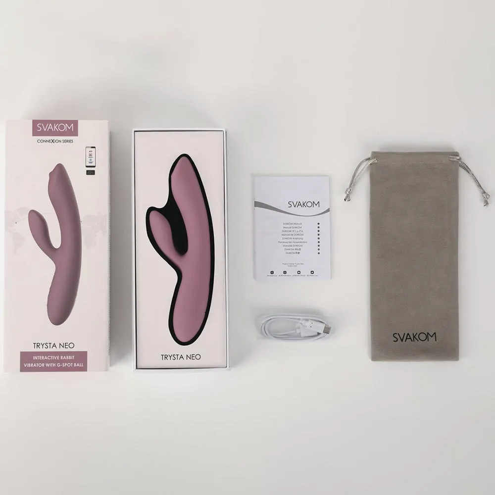 Интерактивный вибратор-кролик с шариком для зоны G Trysta Neo усиливает удовольствие в зоне G с помощью более плотного и ощутимого шарика, который катается вверх и вниз по головке полужесткого ствола. Также имеется независимый стимулятор клитора для развития смешанных оргазмов с соблазнительными вибрациями. Как часть серии Connexion от SVAKOM, Trysta Neo позволяет «чувствовать» интерактивные видео для взрослых. Вы также можете использовать Trysta Neo с приложением SVAKOM на смартфоне с поддержкой Bluetooth, чтобы наслаждаться настройкой, управлением на большом расстоянии и игрой с партнером.