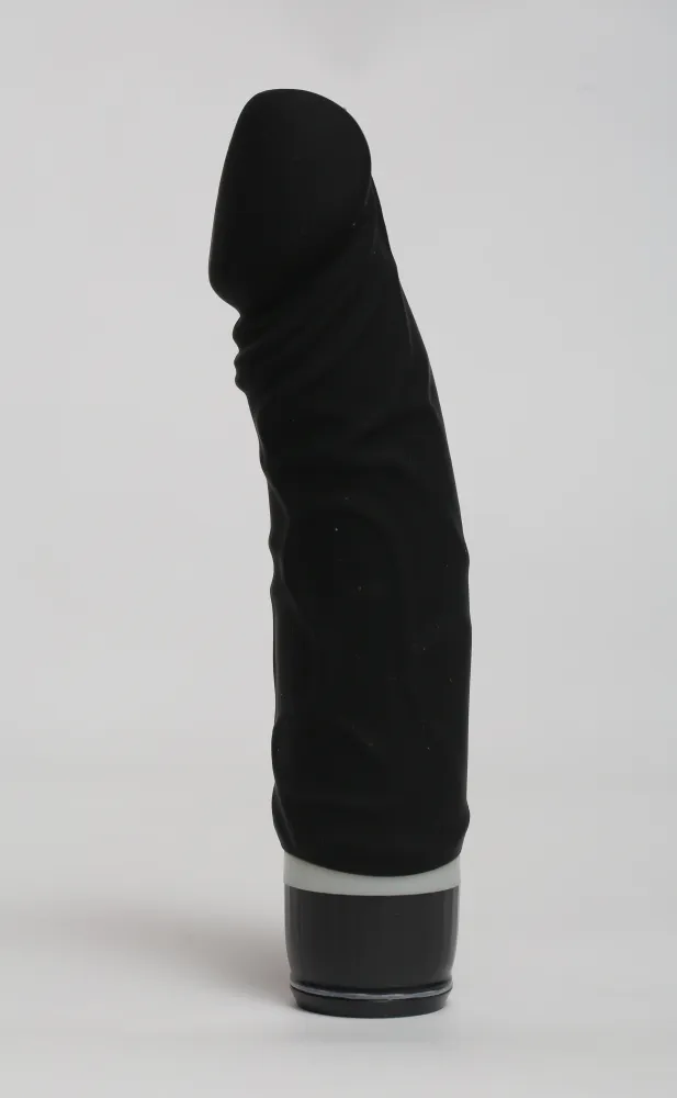 Вибромассажёр черного цвета. Имеет форму члена. Необычайно приятный, рельефный, выполненный из высококачественного силикона , передающий эффект мягкой реалистичной текстуры кожи, не имеет швов. Виброэлемент расположен по всей длине изделия. Вариации вибрации регулируются при помощи кнопки, расположенной в основании. Работает от 2-х батареек типа АА (в комплект не входят). Общая длина – 19,5см, основной диаметр 3,5 см, максимальный диаметр в изгибе головки -4,2 см. Упаковка в виде картонной коробки.