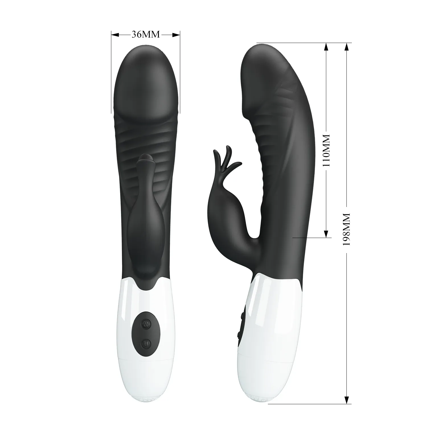 Вибратор Rasmussen от бренда PRETTY LOVE предназначен для вагинальной и клиторной стимуляции. Изготовлен из силикона и ABS, он оснащен двумя мощными моторами и предлагает 30 режимов вибрации. Имеет допольнитиельный рельеф на вагинальной части для большей стимуляции. Вибратор питается от двух батареек типа AAA. Размеры устройства: длина 199 мм, диаметр 36 мм, длина рабочей части 110 мм. Вес — 148 граммов.