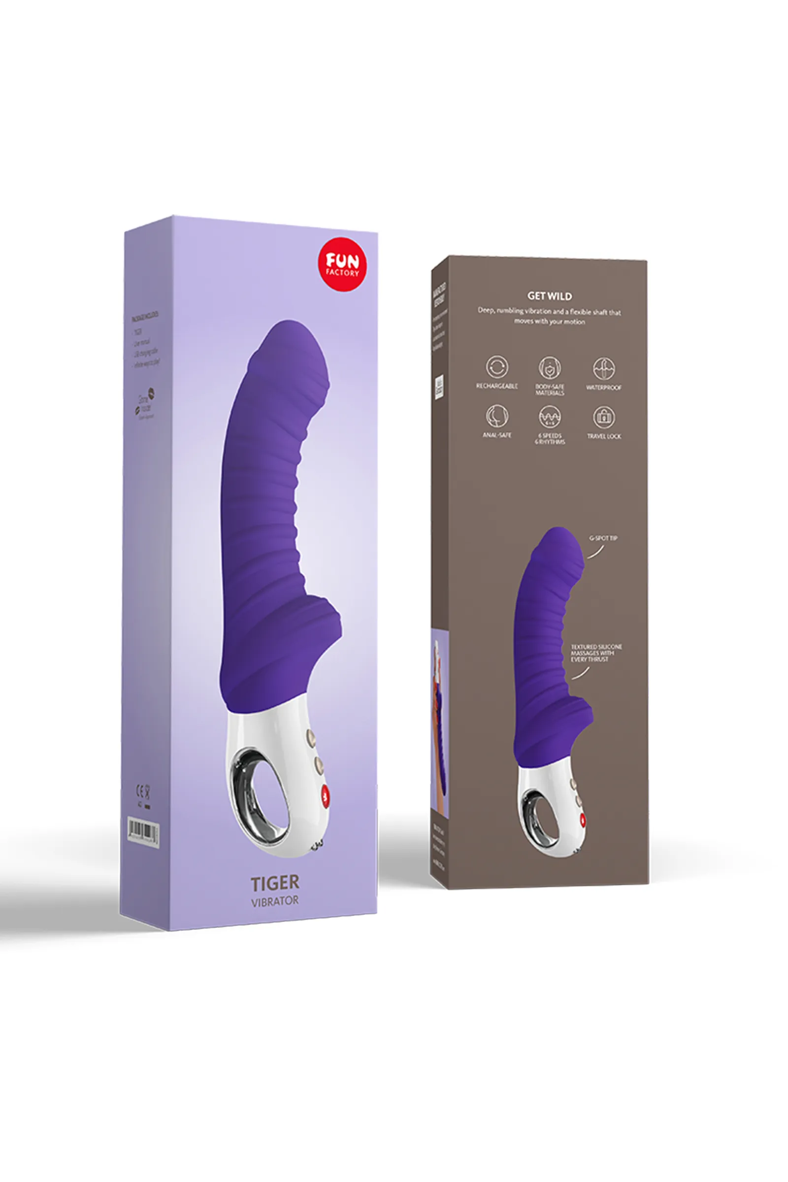 Погрузитесь в мир безудержного удовольствия с вибратором TIGER от бренда FUN FACTORY. Этот игрушечный тигр освободит вашу дикую сторону и доставит вам высочайшее наслаждение. Почувствуйте мощную вибрацию, которая проникает в самые глубины вашего удовольствия. Изогнутая головка TIGER позволяет наслаждаться точечным массажем G-зоны или простаты, а гибкий ствол двигается в такт вашим желаниям. Многочисленные ребра на стволе игрушки дополнительно стимулируют нежные и чувствительные зоны. Эргономичная ручка-кольцо из стекла обеспечивает комфортное удержание даже при использовании смазки. TIGER идеально подходит для сольных и парных игр, а его уникальный дизайн позволяет наслаждаться им как вагинально, так и анально. С 6 уровнями интенсивности и 6 режимами вибрации, а также возможностью "запоминания" любимого режима, TIGER станет вашим незаменимым спутником в мире удовольствия. И не стоит беспокоиться о случайном включении – блокировка путешествий защитит вашего ТИГРА от неожиданных активаций. Погрузитесь в мир удовольствия где угодно, ведь TIGER полностью водонепроницаем и готов к приключениям под водой. Благодаря его мощной вибрации и простому управлению, вы можете наслаждаться развлечениями на новом уровне, где бы вы ни находились. Внешний материал игрушки – фирменный бархатистый силикон от FUN FACTORY, обеспечивает мягкость и комфорт во время использования. Доверьте свое удовольствие немецкому качеству и инновационному дизайну TIGER от FUN FACTORY. Наслаждайтесь глубокими оргазмами и откройте для себя новые грани вашего сексуального наслаждения. Девайс выполнен в Германии из медицинского силикона и поддерживает 2-летнюю гарантию от производителя. Основные преимущества BOOTIE FEM: 6 уровней интенсивности и 6 режимов вибрации Мощный мотор и глубокие вибрации Немецкое качество. Сделано в Германии Медицинский силикон, цвет фиолетовый Запоминание любимого режима. Просто подержите 5 секунд кнопку FUN и в следующий раз, при первом включении сразу почувствуете любимый режим Стильная рукоятка-кольцо TIGER не только красива, но и очень практична. В ней есть отверстие для пальцев, которое обеспечивает надежное сцепление с вибратором TIGER полностью водонепроницаемый. Он прекрасно подойдет тем, кто любит игры в душе или ванной Блокировка кнопок. Вибратор не сможет включиться тогда, когда это не нужно 2 года гарантии от производителя.
