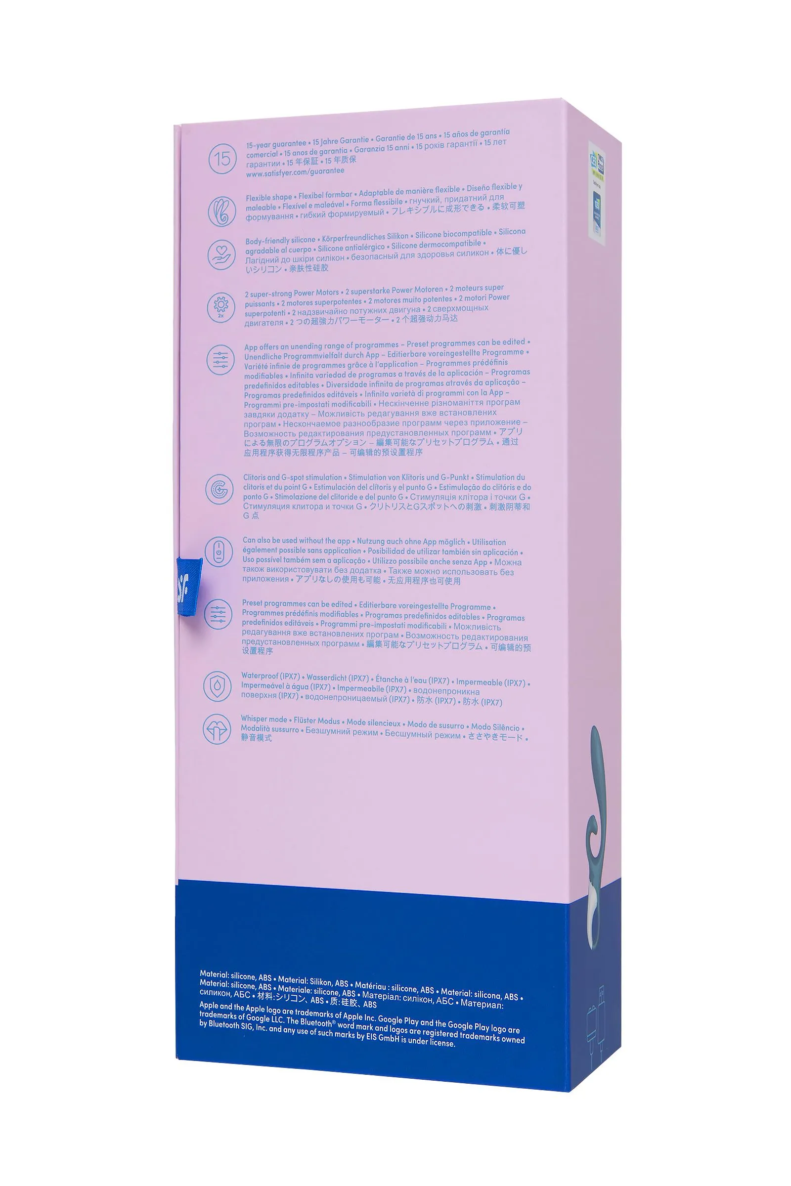 Вибратор-кролик Hug me от Satisfyer создан дарить глубокую стимуляцию. Игрушка обладает двумя отростками – вагинальным и клиторальным, которые вместе создают ощущение крепких объятий. Он будто обнимает клиторальную зону изнутри и снаружи, благодаря восхитительной стимуляции клитора и зоны G. 2 мощных мотора пробуждают волны наслаждения, стимулируя вибрацией самые чувствительные области. Гибкая погружная часть диаметром 4,2 см дарит ощущение заполненности и прицельно стимулирует зону G, подстраиваясь под анатомию индивидуально. Клиторальный отросток в форме лепестка, скрученного в спираль, обнимает клитор и пружинит при каждом движении. Дополнительная выпуклость на отростке максимально плотно, но при этом нежно прилегает к клитору, одновременно передавая вибрацию и на половые губы. Ручка-кольцо позволит уверенно держать игрушку в самых разнообразных позициях и при любой интенсивности движений. Игрушка имеет 12 паттернов вибрации на каждом моторе, а приложение Satisfyer Connect, доступное на Android и iOS, существенно расширяет возможности предустановленных режимов. Вы можете создавать свои собственные уникальные режимы стимуляции. Девайс поддерживает режим преобразования звуков в вибрацию, поэтому он способен вибрировать даже в такт любимой музыке. Но и это не все – приложение для смартфона имеет функцию чата и даже позволяет передать управление игрушкой другому человеку дистанционно. Satisfyer Connect не имеет границ – в настоящее время поддерживается более 25 языков. Интегрированные функции чата / звонка и видеовызова гарантируют приятное интимное общение. Плавные изгибы и аккуратный рельеф обеспечивают легкое проникновение. Шелковистое силиконовое покрытие — фирменный знак Satisfyer, тактильно нежный и приятный на ощупь, он быстро адаптируется к температуре вашего тела. Чтобы получить максимум удовольствия и сохранить материал в наилучшем виде, рекомендуется пользоваться качественной смазкой на водной основе. После использования обязательно очищайте вибратор теплой водой со специальными бактерицидными спреями для интимных товаров. Особенности: 2 мощных автономных мотора Гибкий вагинальный отросток создает ощущение наполненности Изогнутый и упругий клиторальный отросток глубоко стимулирует клитор и прилегающую зону Удобная ручка-кольцо и эргономичная форма 12 режимов вибрации для каждого мотора и неограниченное количество режимов в приложении Satisfyer Connect с подключением через Bluetooth. Стильный серо-голубой цвет и мягкий, эластичный силикон без запаха, без аллергенов и вредных для здоровья веществ. Возможность использовать игрушку в ванной и душе благодаря полной водонепроницаемости (до 30 минут на глубине до 1 метра) – IPX7. Время работы 50 минут. Перезаряжаемый, магнитный USB-кабель, время зарядки 4,5 часа.