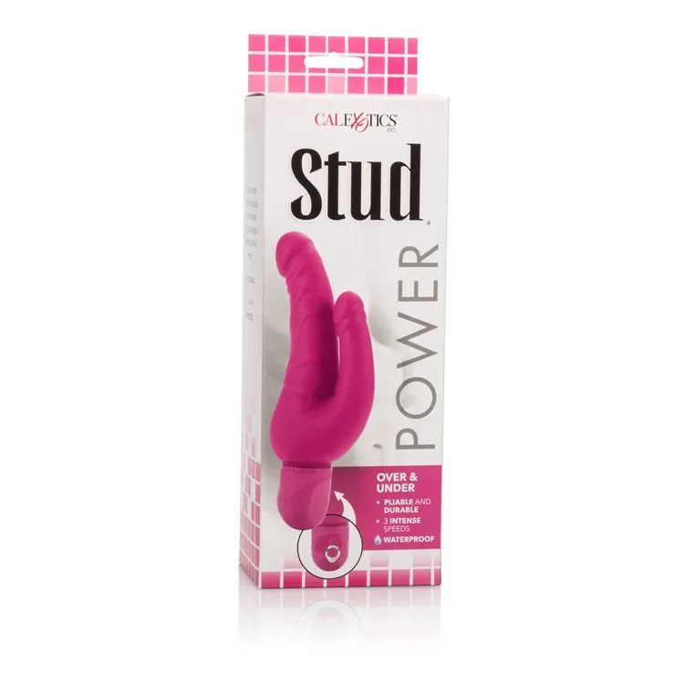 Изумительный вибратор Power Stud Over & Under сможет удовлетворить все Ваши самые тайные желания, ведь он создан специально для двойного проникновения. С этой игрушкой Вы сможете полностью отдаться своему удовольствию, так как он будет интенсивно стимулировать два Ваших самых чувствительных местечка. Большой ствол имеет загнутый кончик, что позволит более точно массажировать эрогенные зоны, в то время как его рельефная поверхность с венками будет усиливать ощущения от стимуляции, доводя Вас до пика страсти. Меньший ствол предназначен для анальных ласк, с ним Вы сможете испытать яркие ощущения, которые сделают любовную игру по-настоящему запоминающейся. Вибратор обладает 3 режимами вибрации, которые волнами разнесутся по Вашему телу, приближая долгожданный оргазм.