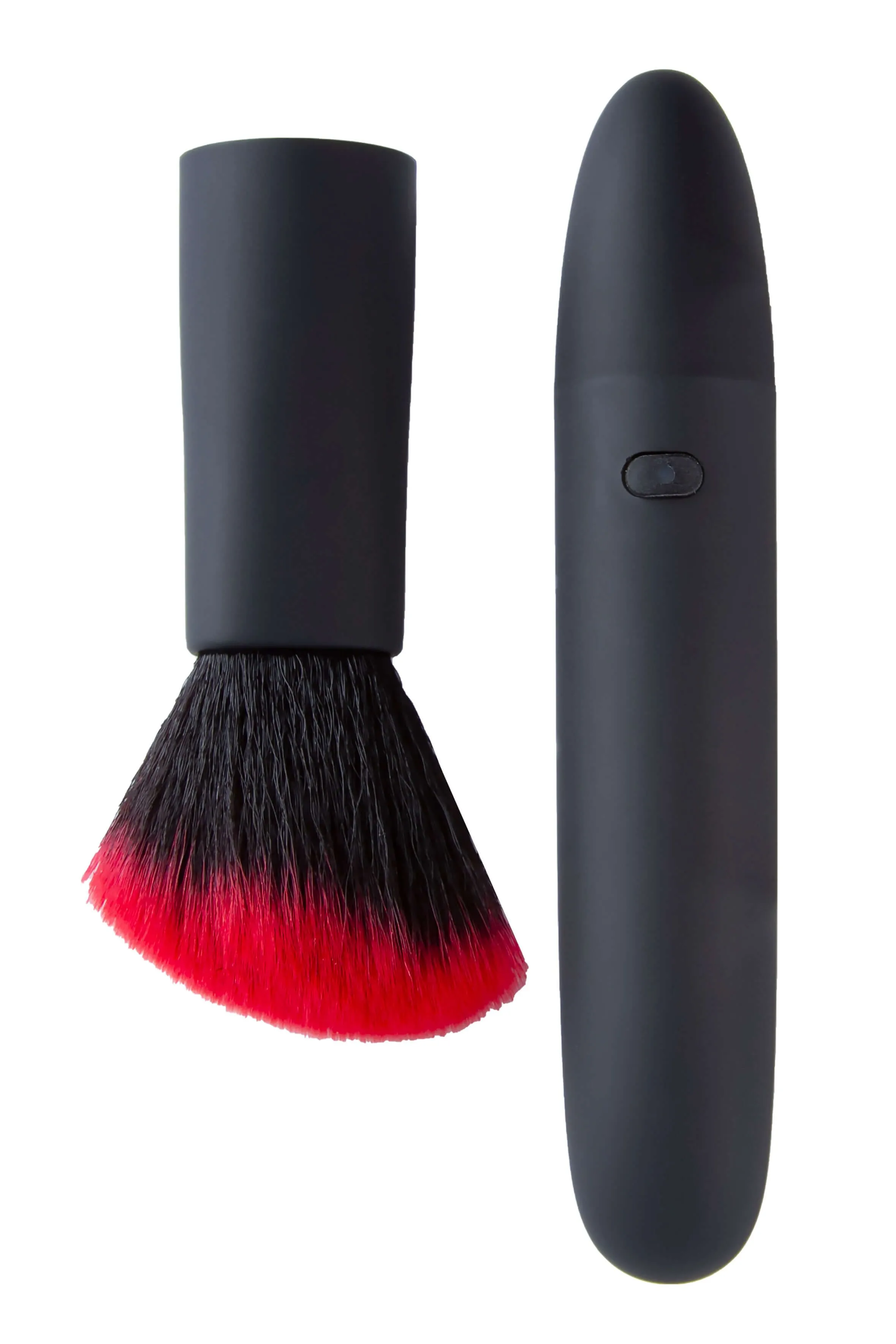 Вибратор-кисточка сделан из прочного пластика с бархатистым покрытием и искусственного меха красно-черного цвета. Корпус помады сделан из гладкого пластика, а кончик - из приятного на ощупь силикона. Режимы на обеих игрушках цикличны и контролируются одной кнопкой.
