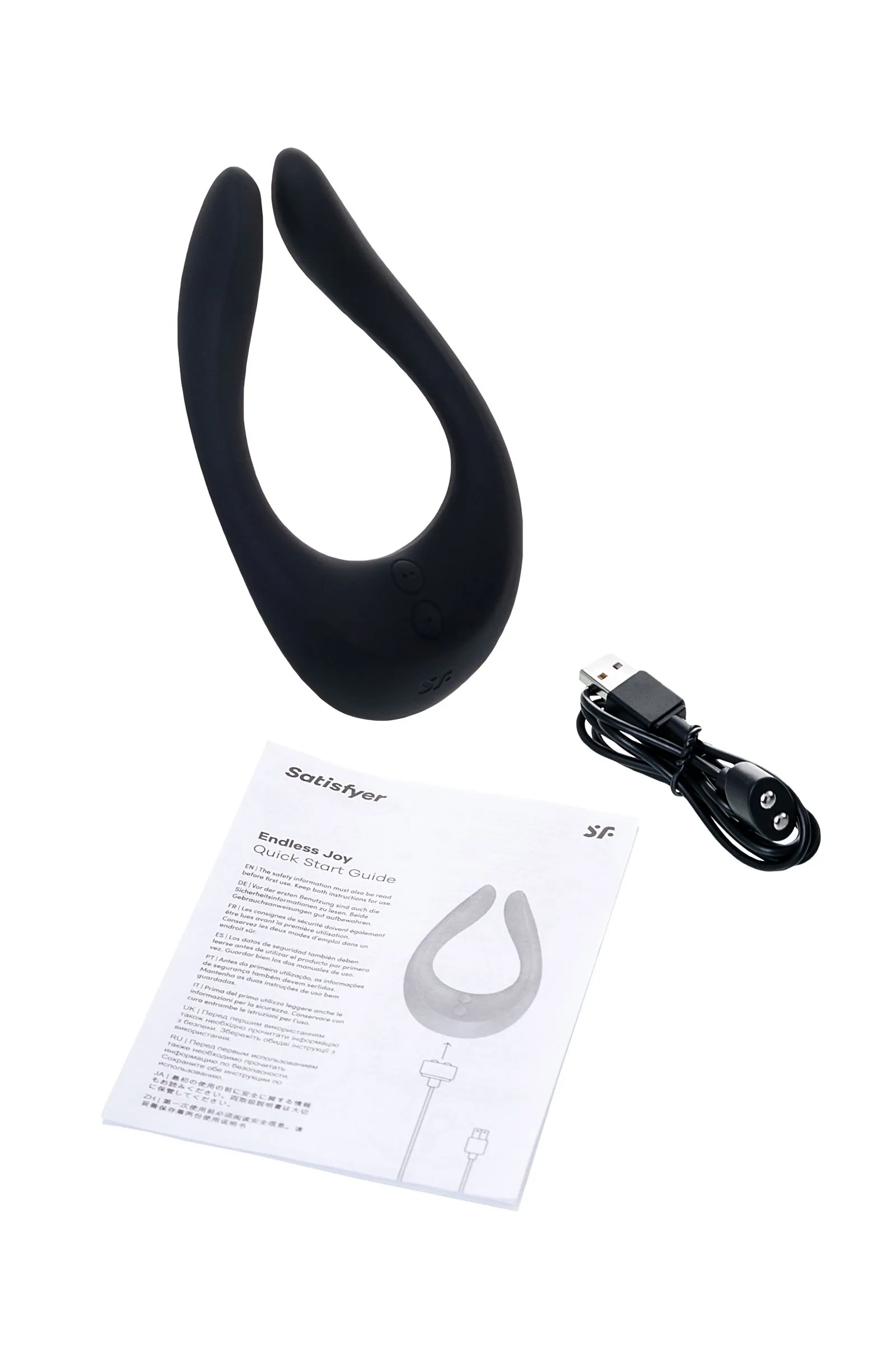 Многофункциональный стимулятор для пар Satisfyer Partner Multifun 2 придает интимной жизни буйство ощущений — он может заменить сразу 4 секс-игрушки, радует 14-ю вариантами применения и предлагает более ста сногсшибательных комбинаций, которые только и ждут, пока вы откроете их для себя. Неважно, будет ли Multifun 2 сверху, снизу или сбоку — этот соблазнительный умелец искусно встроится во все ваши любовные игры. Он равномерно распределит каждый из десяти режимов вибрации с помощью трех моторов с независимым управлением и с легкостью синхронизируется под ваше удовольствие. Попробуйте! Стимулятор для пар. Во время интимной сессии установите широкую сторону девайса на клитор, а «ушки» направьте на мошонку или член партнера. Волнующий массаж — лучшая прелюдия перед громким оргазмом. Массажер внешних эрогенных зон. Проведите трепещущими кончиками игрушки по шее, груди, соскам, бедрам, клитору, половым губам, мошонке, члену партнера и другим чувствительным местам. Увидите, они ответят на нежные импульсы мгновенным возбуждением. Вибратор для точки G. Пульсирующие «пальчики» Multifun 2 имеют идеальную форму и длину для пробуждения загадочной G-точки. Просто введите их внутрь и отдайтесь наслаждению. Игрушка для экспериментов в душе. Стимулятор обладает полностью водонепроницаемой поверхностью, с ним вы легко сможете взбодрить свой утренний душ или расслабиться в вечерней ванне с ароматной пенкой. Кольцо для члена. Наденьте девайс на член партнера. Массажер порадует плотным обхватом, а вибрация усилит эмоции от стимуляции и приведет к более яркой разрядке. Согласитесь, любовь — это когда всем делятся друг с другом, так почему бы не поделиться оргазмом от Multifun 2?