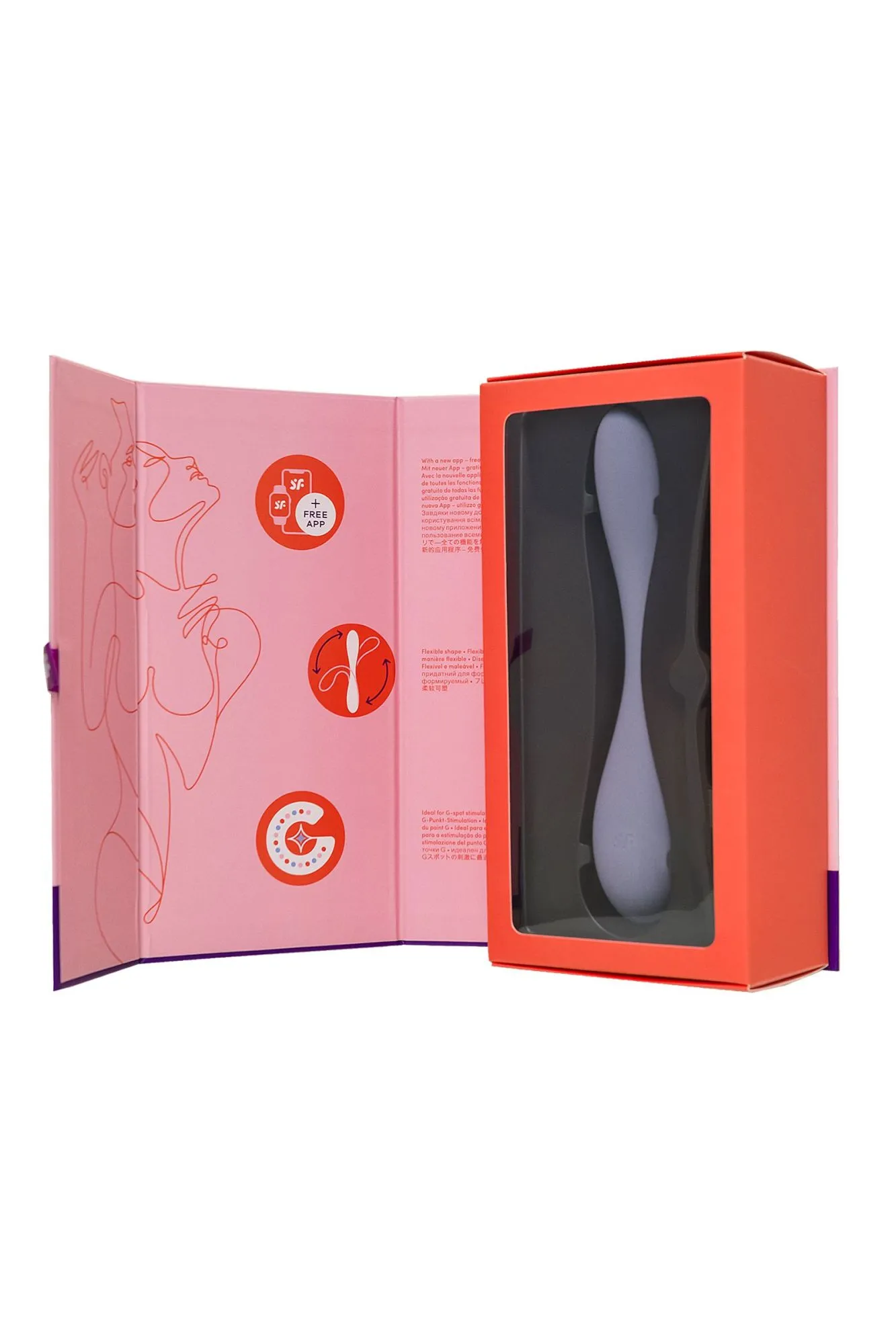 Мультифункциональный и супер гибкий вибратор G-Spot Flex 5 от Satisfyer нацелен на стимуляцию самых чувствительных и потайных эрогенных зон. G-Spot Flex 5 имеет полностью гибкую шейку. Регулируемый угол стимуляции позволяет зафиксировать вибратор так, чтобы зона G получила максимальное соприкосновение с вибрирующим наконечником. G-Spot Flex 5 в сочетании с фантазией проведет вас по пути неземного блаженства в сольной игре или прелюдии с партнером. Элегантный дизайн идеально разработан для воздействия на точку G – для интенсивной стимуляции и комфортного расположения в руке. Деликатное воздействие на все известные и еще неизвестные эрогенные зоны обеспечивает упругая продолговатая форма ствола. Изящный кончик точно ласкает область зоны G и подходит для стимуляции внешних эрогенных зон. Интуитивно понятное управление тремя кнопками прямо на корпусе игрушки, которые ложатся точно под пальчики. Мощный надежный мотор стимулирует наслаждение с помощью 12 предустановленных паттернов вибрации. Испытайте удовольствие по-настоящему с бесплатной функцией управление при помощи смартфона с поддержкой Bluetooth через приложение Satisfyer Connect, доступное на Android и iOS. Создавайте собственные уникальные режимы вибрации, существенно расширив возможности предустановленных режимов. Девайс способен вибрировать даже в такт музыке. Satisfyer Connect не имеет границ – передавайте управление удовольствием партнеру даже на большом расстоянии. Шелковистое силиконовое покрытие — фирменный знак Satisfyer, тактильно нежный и приятный на ощупь. G-Spot Flex 5 позаботится о самых чувственных прикосновениях даже в ванной и душе. Благодаря водонепроницаемости IPX7 игрушку можно погружать под воду до 30 минут. Чтобы получить максимум удовольствия и сохранить материал в наилучшем виде, рекомендуется пользоваться качественной смазкой на водной основе. После использования обязательно очищайте стимулятор теплой водой со специальными бактерицидными спреями для интимных товаров. Особенности: Анатомически совершенный – регулируемый угол стимуляции. Простое управление тремя кнопками. 12 режимов вибрации. Нежный сиреневый цвет и мягкий, эластичный силикон без запаха, без аллергенов и вредных для здоровья веществ. 100% водонепроницаемый - IPX7. Перезаряжаемый, магнитный USB-кабель. 15 лет гарантии от производителя.